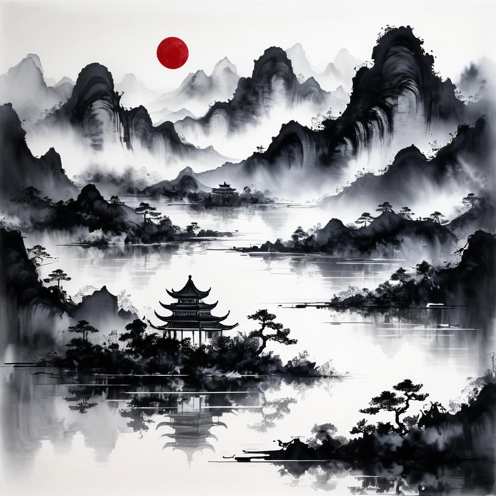 传统中国山水画以笔墨为核心,强调气韵生动与留白之美。然而,当代艺术的发展为水墨画带来了新的可能性。现代水墨山水实验者不仅关注传统技法的延续,更尝试突破材料与表现方式的限制,例如结合压克力、拼贴或数位技术,创造新的视觉语汇。通过对比强烈的色彩运用、极简的构图形式以及抽象笔法,现代水墨山水作品既能保留东方文化韵味,又能与当代艺术语境接轨。这种实验性的创作方式,不仅挑战传统,也为水墨艺术的未来开启了更多可能。