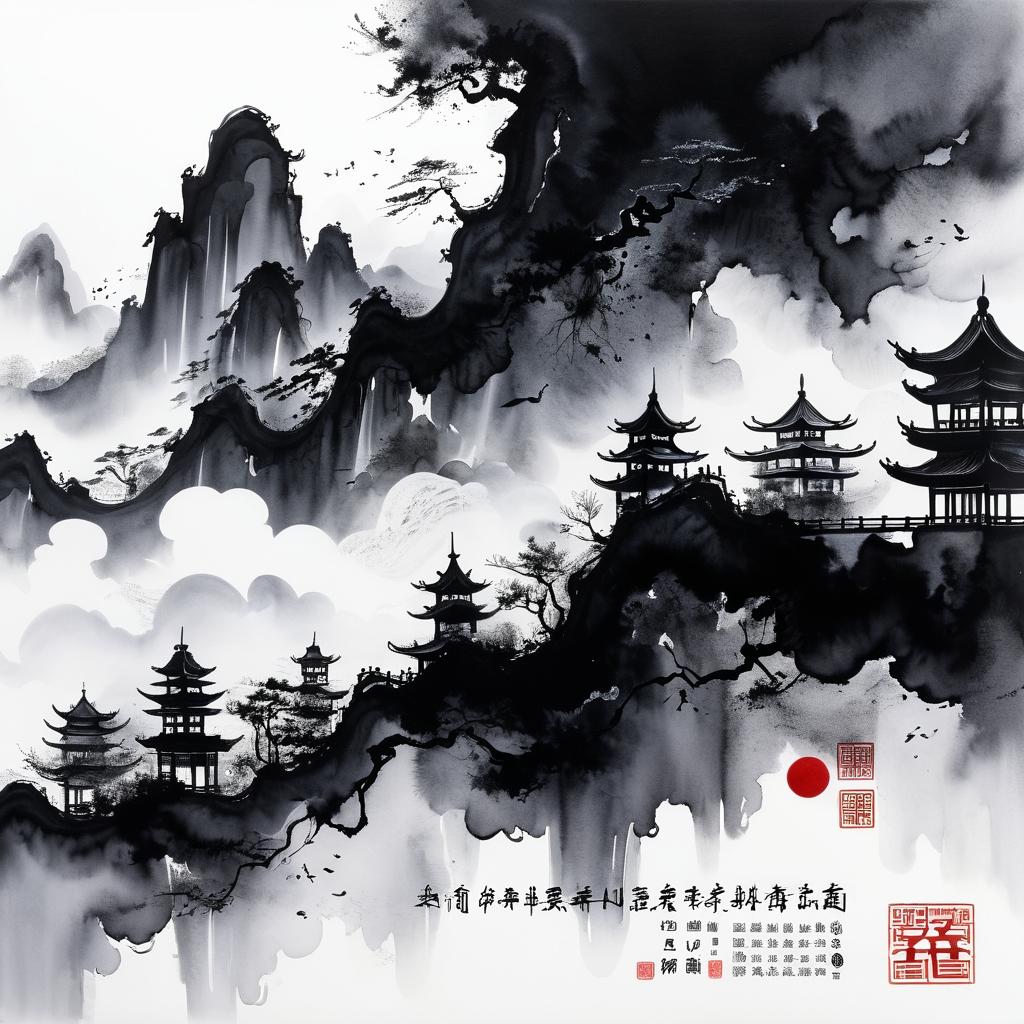 在创作中,可以尝试结合抽象背景或现代纹理,利用数位技术增加层次感,例如通过AI生成自然纹理,或使用拼贴技法增强视觉冲击。可以在传统水墨的基础上加入现代图形元素,创造一个既古典又现代的对比效果。