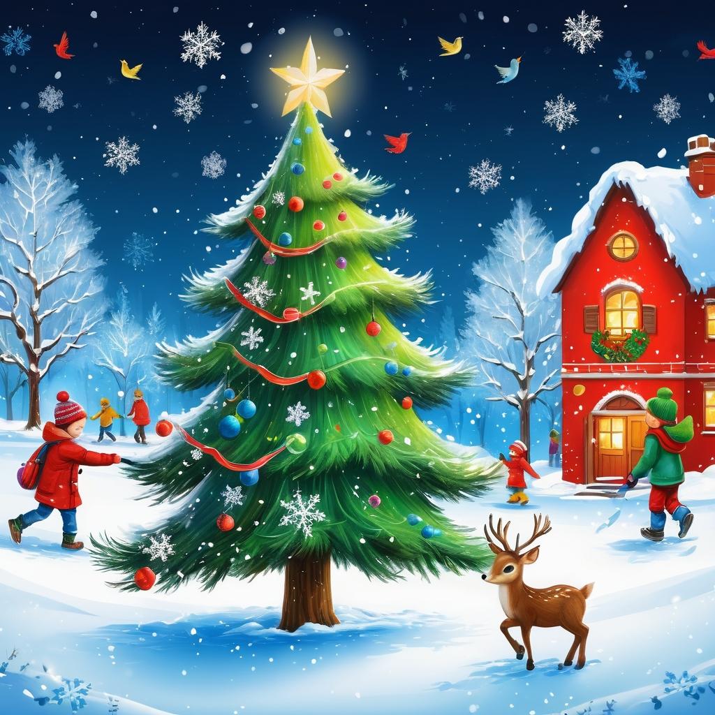 在儿童的世界中,艺术创作是表达他们内心感受和想象力的最佳途径。这幅作品通过简单的线条和形状展现了一个温暖的圣诞节场景。画面中的圣诞树和人物都以极简的方式呈现,传达出孩子们对节日的单纯理解。飘落的雪花增加了冬季的氛围,让人感受到节日的气息。为了进一步提升这幅作品的艺术性和视觉冲击力,可以考虑加入更多的色彩和细节。使用鲜艳的红色和绿色装饰圣诞树,不仅能吸引眼球,还能增强节日的欢乐感。此外,为人物添加围巾和帽子,不仅可以增加冬季的感觉,还能使画面更加生动有趣。背景中的雪花和小动物如小鸟或鹿,也可以为画面增添活力和趣味性。通过这些调整,这幅作品将更加富有层次和情感,成为一个充满童趣的艺术作品。