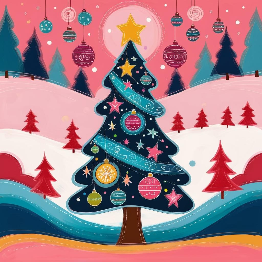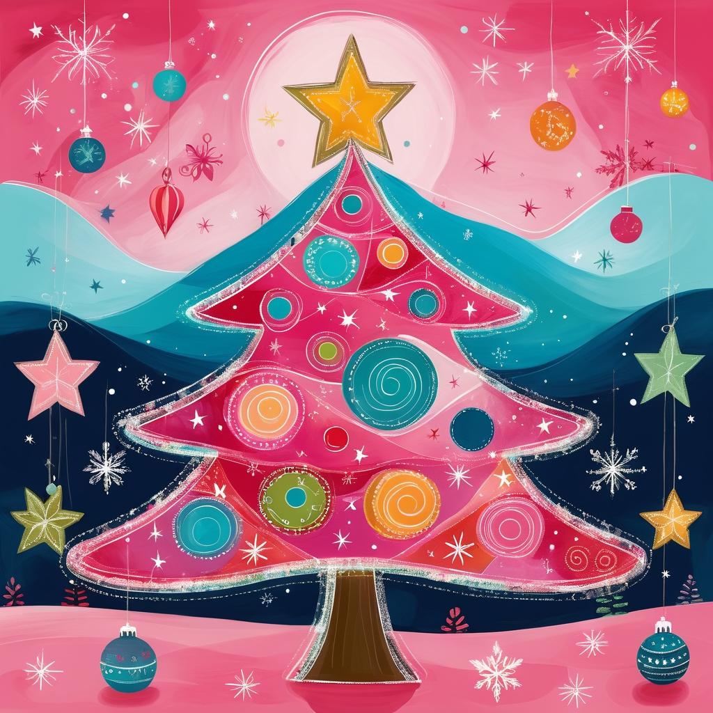 在这幅简约而充满童趣的作品中,创作者以简单的线条勾勒出圣诞树及其装饰,传达出一种浓厚的节日气氛。粉色的背景不仅为画面增添了温暖的基调,还与圣诞节的欢乐主题相得益彰。该作品的风格让人联想到天真艺术(Naive Art),其特征是通过简单直接的表达方式传递深刻的情感。在进一步提升这幅作品时,可以考虑增加色彩的层次感和丰富度,例如在圣诞树上添加更多的装饰细节,使用不同的色彩和材质来表现装饰物的光泽。这不仅能增强画面的视觉吸引力,还能增加整体的艺术深度。此外,背景的粉色可以通过渐变效果模拟节日夜晚的灯光效果,使整个作品更具节日的氛围和艺术性。通过这些改进,这幅作品将不仅仅是一幅简单的儿童画,而是能够吸引各年龄段观众的节日艺术作品。