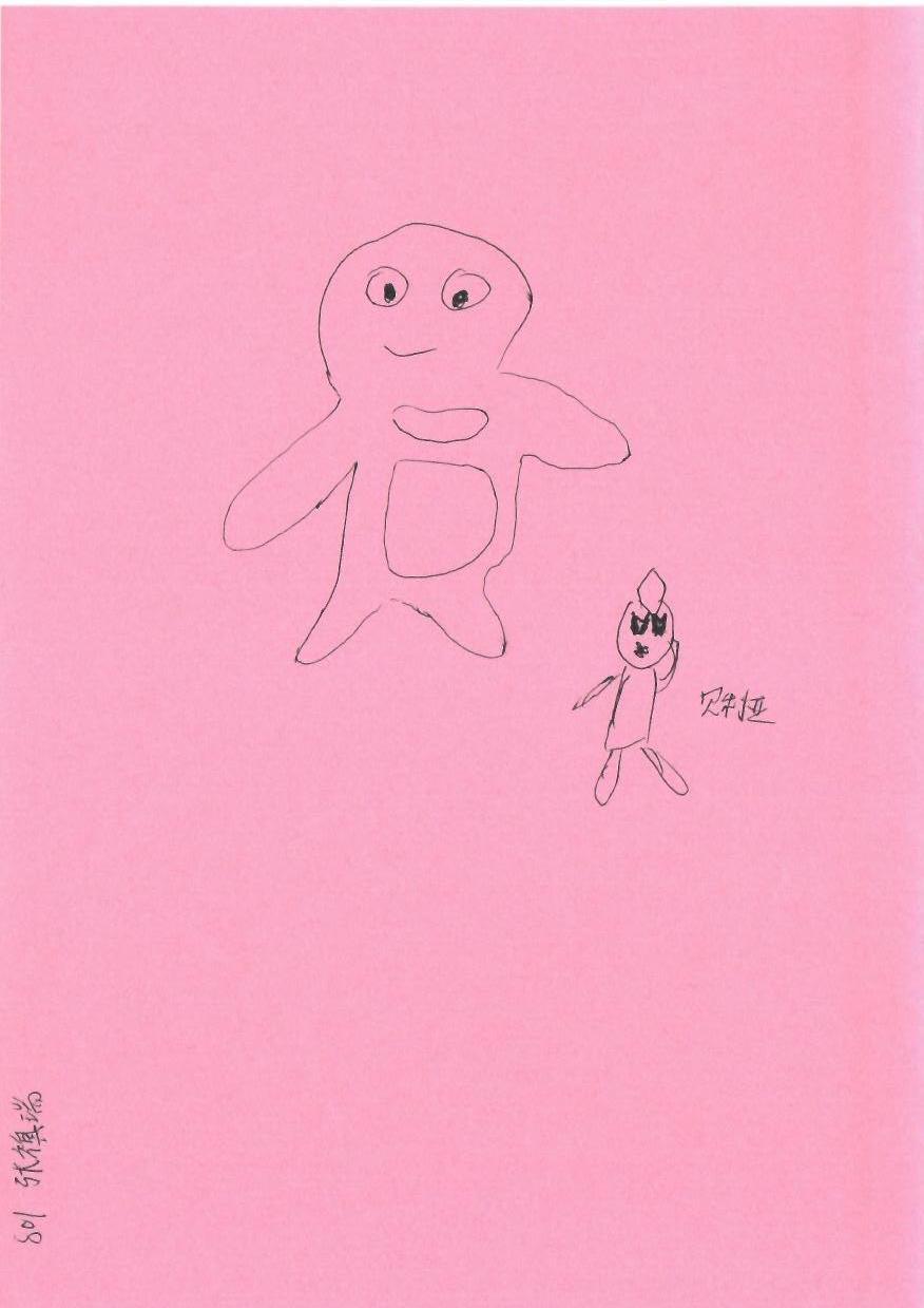 这幅作品以其简单而富有童趣的风格吸引了观者的目光。使用黑色线条在粉色背景上勾勒出的两个卡通角色,传递出一种轻松愉悦的氛围。左侧的角色形状圆润,面带微笑,而右侧的角色则较小,拥有更为尖锐的特征,这种对比增强了画面的趣味性。儿童艺术的魅力在于它的纯真与想象力,这幅作品正是这种魅力的体现。为了提升作品的艺术深度,可以考虑加入更多的细节,例如角色的表情变化或动作姿势的变化。此外,在背景中融入简单的场景元素,如公园或房间,可以让作品更具故事性和互动感。通过丰富的色彩组合,不仅可以增强视觉效果,还能更好地表达情感。总之,这样的创作不仅能激发观者的想象力,也能引发对童年美好时光的回忆。