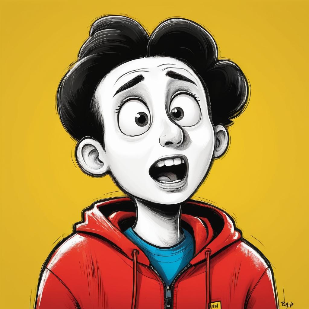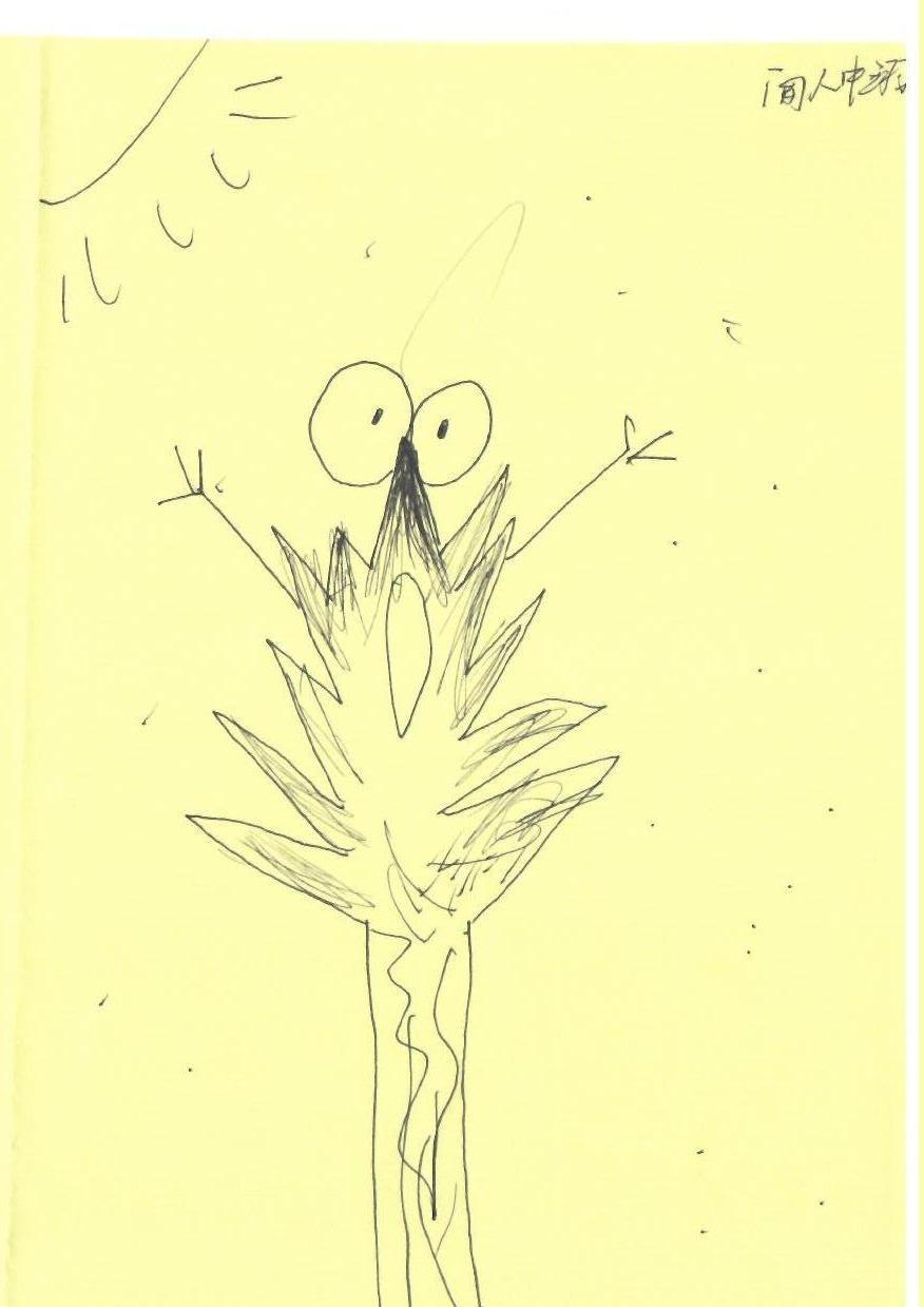 在这幅作品中,作者通过简单的线条和夸张的表情,成功地捕捉到了儿童艺术中常见的纯真与情感。采用明亮的黄色背景,使得主体形象更加突出,同时也营造出一种活泼、轻松的氛围。作品中的角色以其大大的眼睛和张开的嘴巴,传达出一种惊讶或恐惧的情感,这种情感在儿童的世界中尤为常见。通过这种方式,观众不仅被角色的情感所吸引,也被带入到一个充满想象力和故事性的世界中。为了使作品更具深度,可以考虑在背景中加入更多的细节,如角色所处的环境或可能引发其情感的事件。此外,丰富的色彩运用将有助于增强作品的视觉层次感,使其更加引人注目。总而言之,这幅作品展示了儿童艺术的魅力和潜力,值得进一步探索和发展。