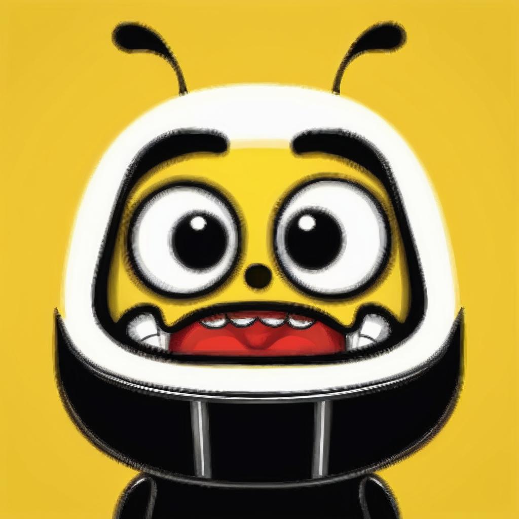 这幅作品展示了一个简单而富有表现力的卡通风格元素。主体是一种拟人化的形象,似乎在表达惊讶或恐惧。画作以黄色为背景,使用黑色线条勾勒出形象,整体风格简约而生动。