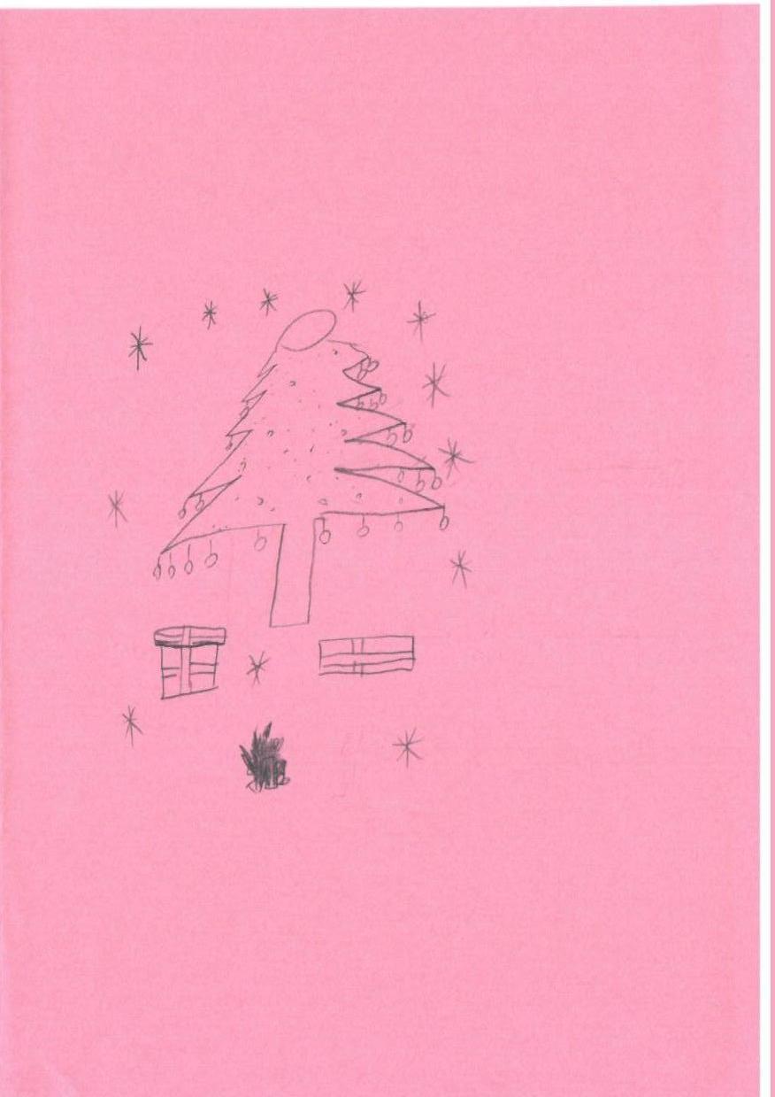 这幅作品以其简单而直接的表现方式,成功地传递了节日的喜悦与温馨。粉红色作为背景色,营造出一种温暖与甜美的氛围,仿佛让观众置身于一个童话般的世界。圣诞树的装饰简单而富有节日气息,圆形的饰物以及周围的星星似乎在诉说着关于期待与希望的故事。礼物盒的存在则为画面增添了一丝神秘与惊喜,引发观众对节日的美好期待。小簇植物的加入,不仅让画面更具生机,也象征着生命的延续与成长。为了进一步提升这幅作品的艺术性,可以考虑在背景中引入更多的细节,比如雪花的飘落或是夜空的渐变色,使画面层次更加丰富。此外,通过增强树的细节表现以及装饰物的光影效果,可以赋予作品更强的立体感和视觉冲击力,使其在儿童艺术领域中更具辨识度和情感共鸣。