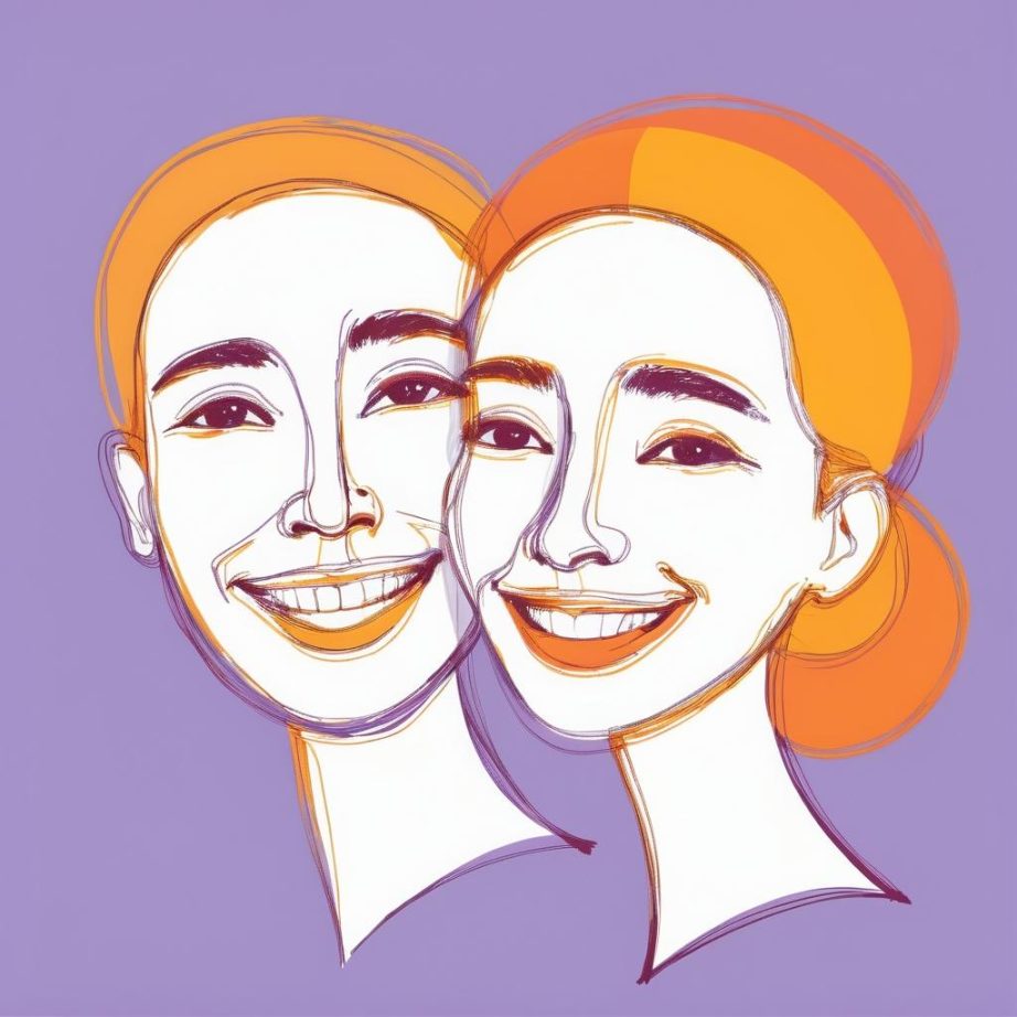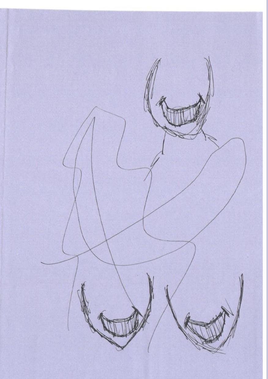 这幅作品使用简单的线条勾勒出三张微笑的嘴,背景为淡紫色,给人一种轻松和愉悦的氛围。线条的随意性和不完整的形象暗示着随性与自由,可能传达出一种对快乐的探索和即兴表达。
