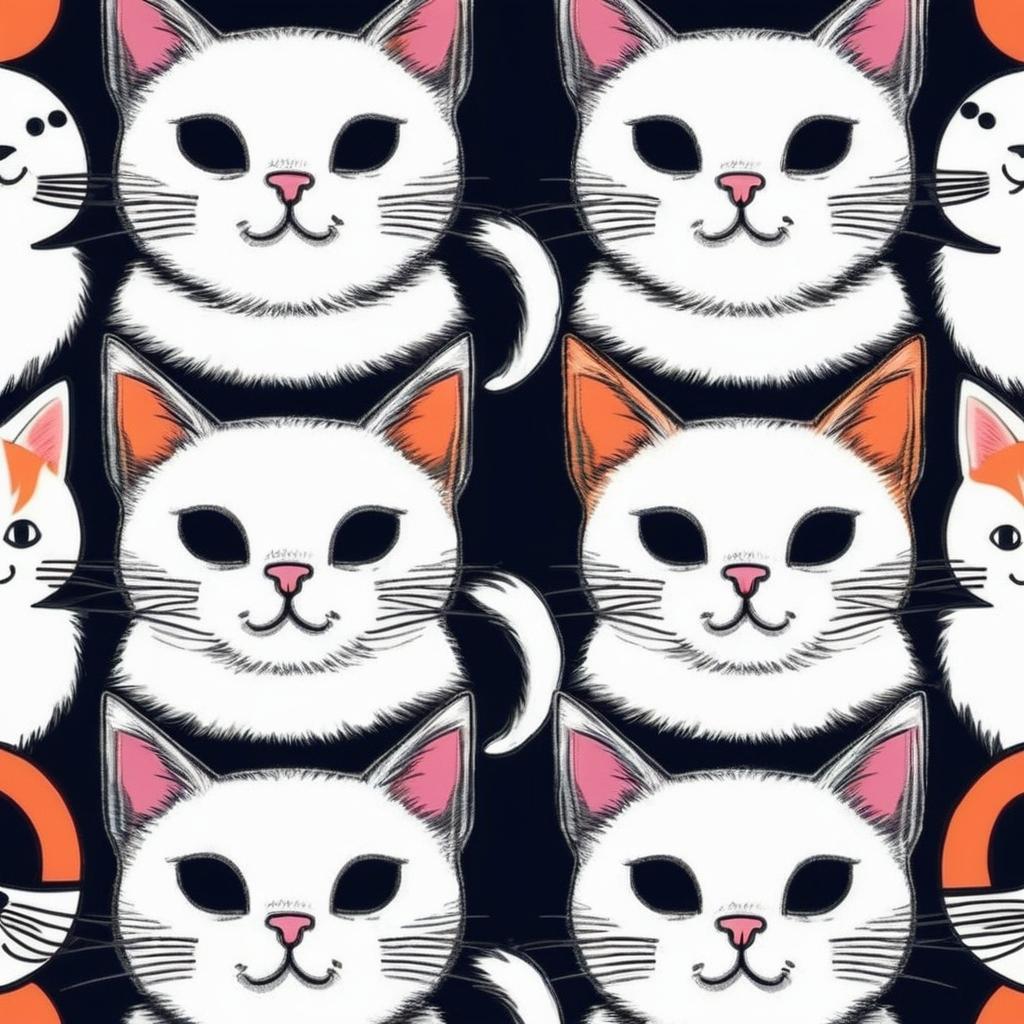 这幅图使用简单的线条勾勒出多个卡通风格的猫咪形象。整体风格较为简约,背景为单色,可能是一张纸。猫咪们的表情各异,传达出一种天真和俏皮的氛围。图中有一种随意和自由的创造力,可能是儿童或者初学者的作品。