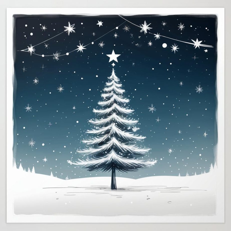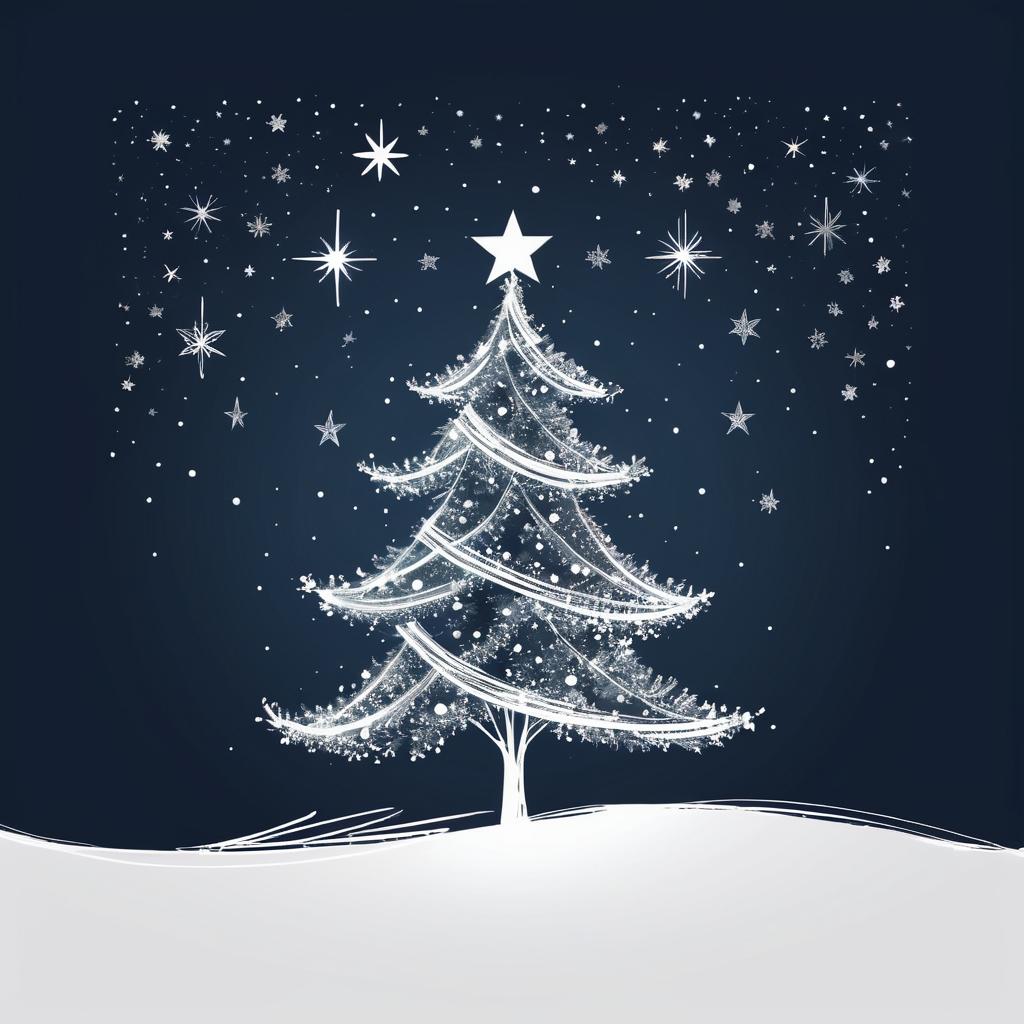 这幅作品以其简约的线条和开放的空间引人注目,给观者留下了充分的想象空间。为了增强其视觉吸引力,可以考虑在背景中添加一些柔和的色彩过渡,或者运用水彩的效果来营造出一种朦胧而梦幻的氛围。此外,可以在树的周围加入一些细节元素,比如微小的雪花或星星的点缀,使整个画面更加生动活泼。这种细节的增加可以加强作品的节日氛围,使其更具感染力和艺术表现力。