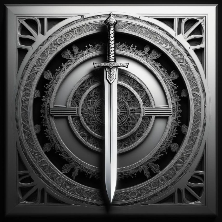 这幅极简主义作品以简洁的线条勾勒出一把剑,剑身的几何图案和其所处的长方体结构引人遐想。在极简主义艺术中,线条和形状是传达情感和主题的关键工具。这幅作品可能在探索权力、传承或神秘的主题。剑作为历史上力量的象征,常常出现在各种文化和传说中。通过这样一种简化的形式,观者可以在简单中找到无限的想象空间。为了提升作品的深度,可以加入一些背景细节,如古代符号或纹理,以增强其历史感和神秘感。使用不同的线条粗细和阴影效果,也可以增加作品的层次感。此外,剑与其他元素的互动,如自然元素(例如树叶、风)或神话中的角色,也是一种增加作品叙事性和情感共鸣的方式。在这个快节奏的现代社会中,极简主义的艺术形式为我们提供了一种安静而深思的空间,让我们在简单中发现复杂。