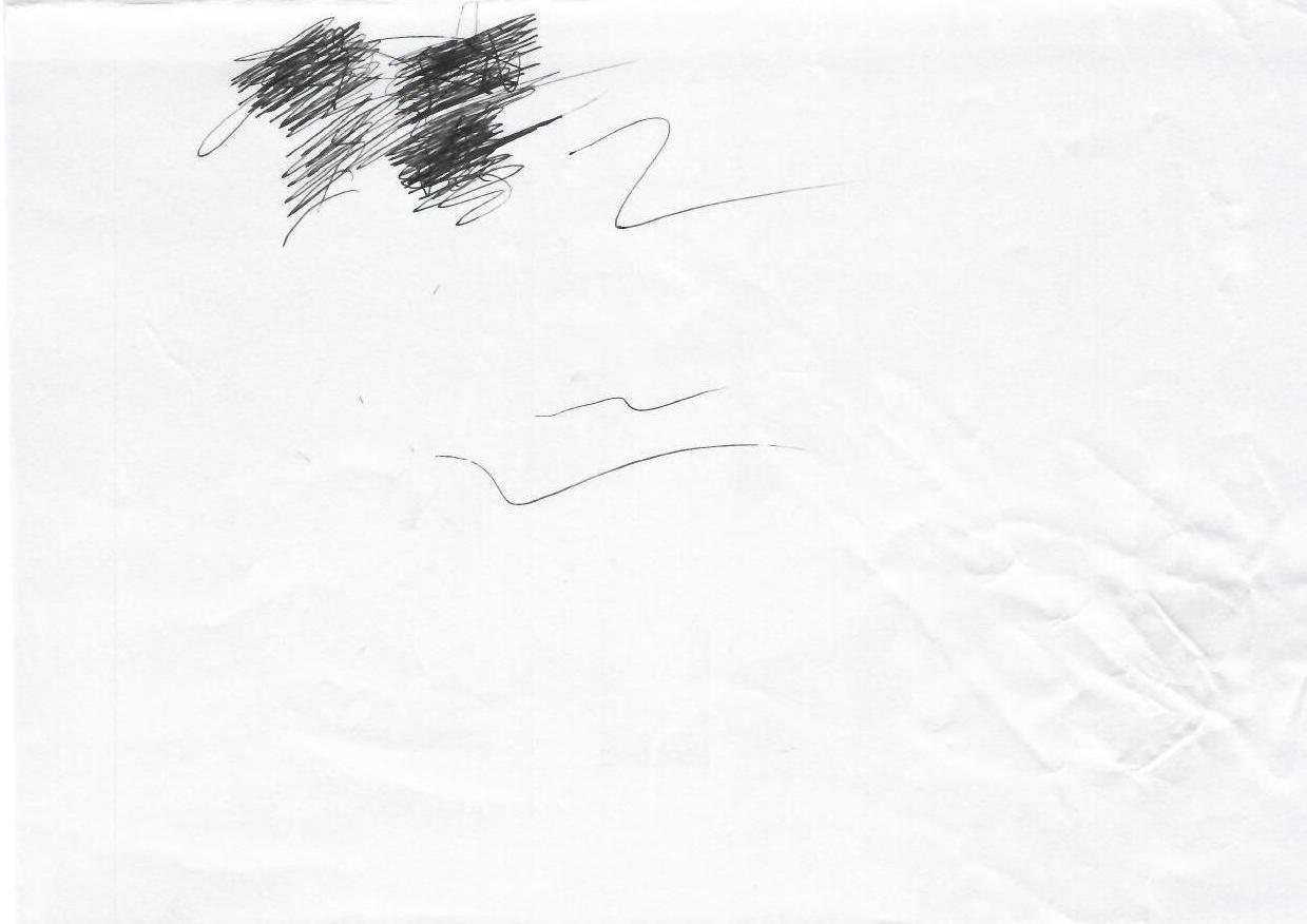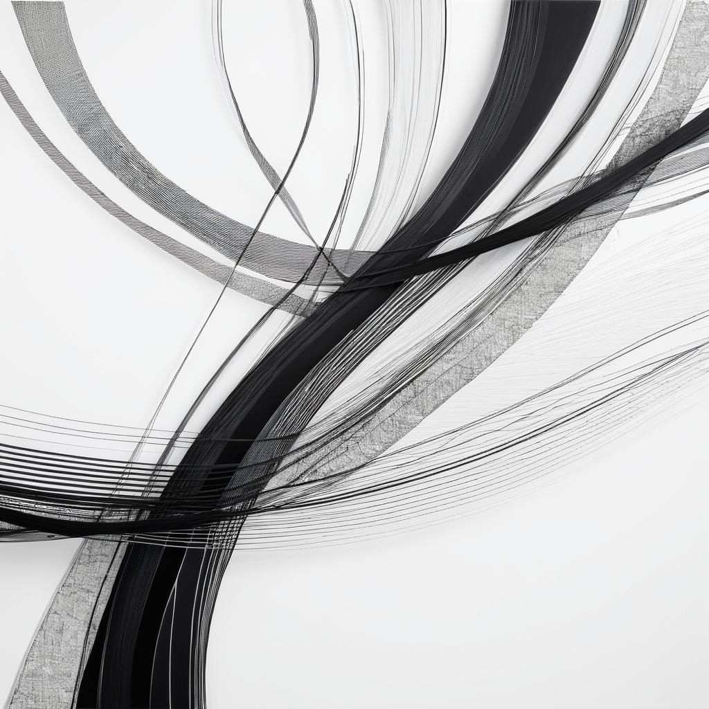 这幅作品以简单的黑色线条在白色背景上勾勒出一种自由而无拘无束的情感。线条的随意性和不规则性暗示了一种原始和直觉的表达方式,可能反映了创作者内心的某种混乱或激动。整体构图较为空旷,给予观众充分的空间进行想象和解读。