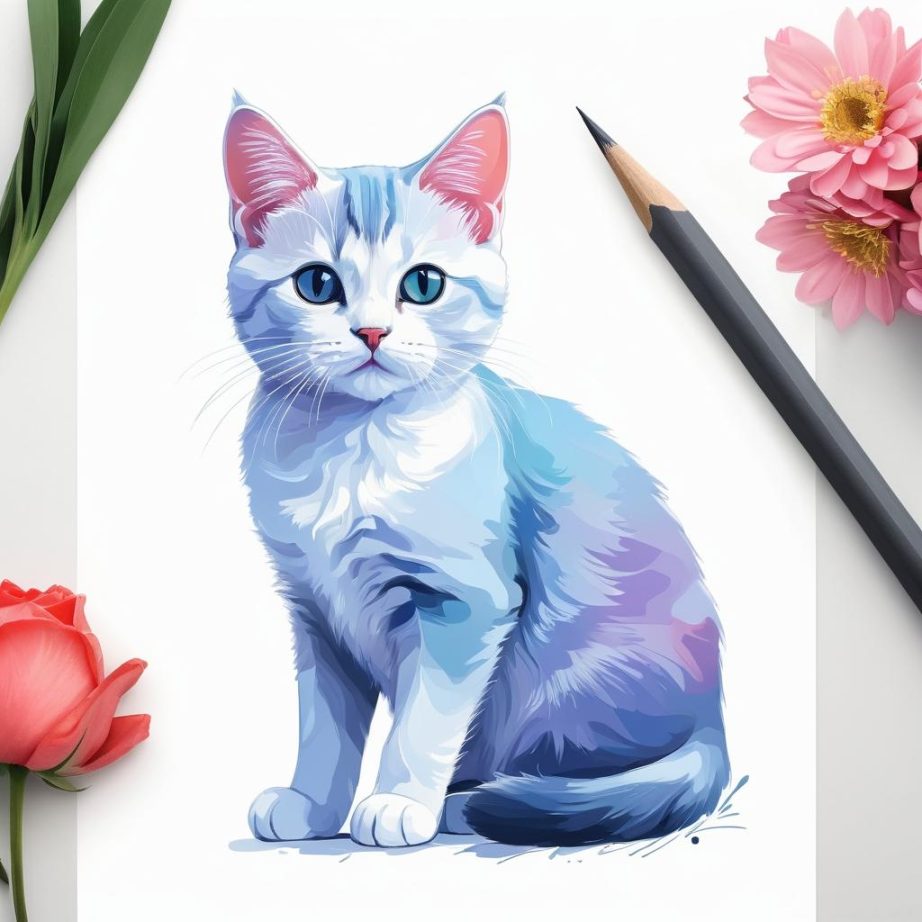 这幅作品以其简约的线条和充满童趣的风格吸引眼球。通过添加更多的背景元素,如花园、家居环境或其他动物,可以增添画面的故事感。运用更多的颜色,尤其是柔和的色调,可以进一步提升作品的视觉吸引力和情感表达。考虑在猫的表情和姿态上增加细节,以赋予其更多的个性和情感深度。整体上,可以通过丰富的细节和色彩使作品更具生命力和艺术性。