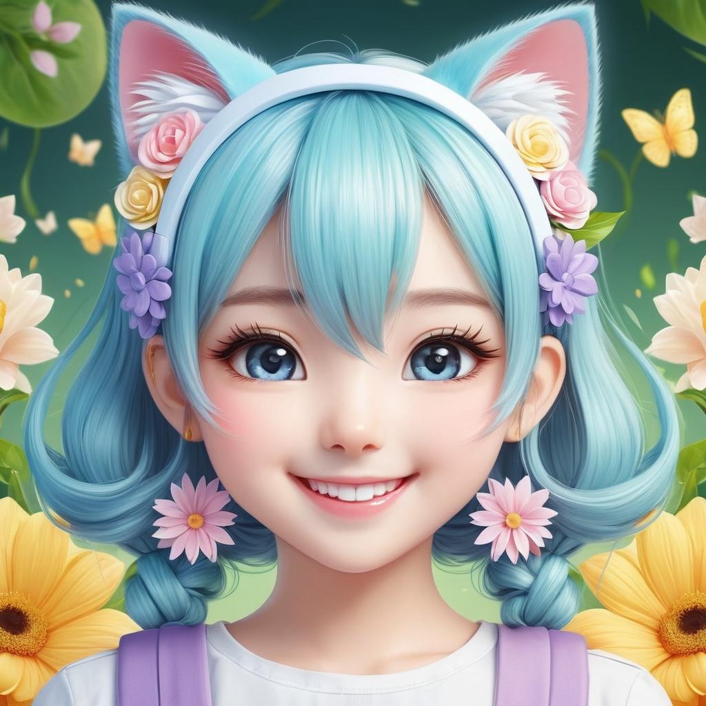 该作品运用简单的线条和可爱的主题,适合向儿童传达美好和愉悦。为了提升作品的艺术性,可以考虑在背景中加入柔和的色彩渐变,以增强视觉吸引力。此外,可以为面部和花朵添加更多细节,例如阴影和纹理,以增加深度和立体感。通过这些变化,作品可以在保持原有情感的同时更加丰富和具吸引力,适合用于儿童绘本插图或玩具设计中。