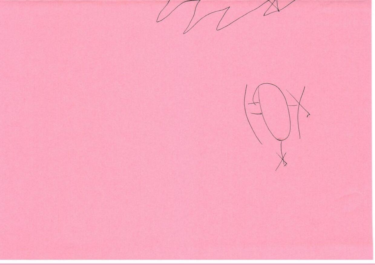 这幅作品主要展示了粉色背景上的黑色线条,线条随意且轻松,展现出一种孩童般的无拘无束。整体画面给人一种纯真和简单的感觉,可能传达了一种童真的主题或情感。