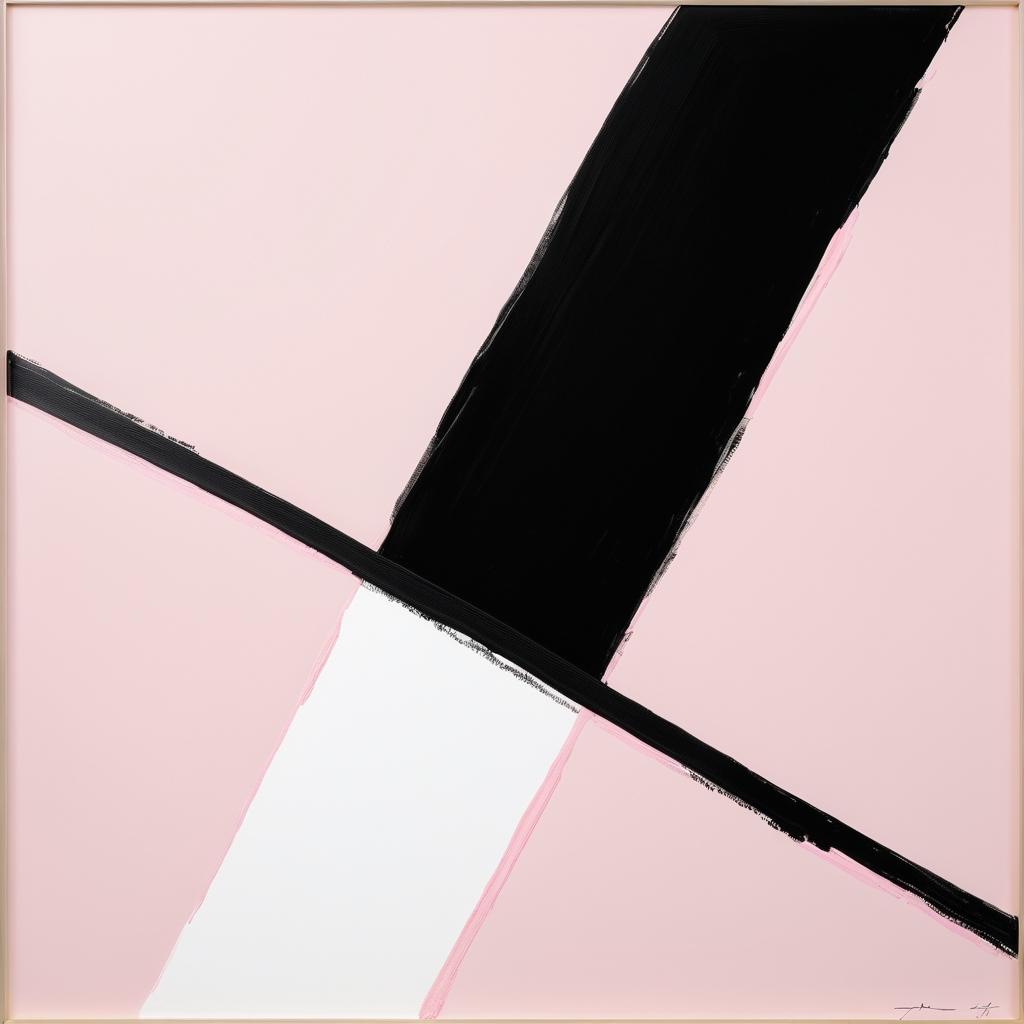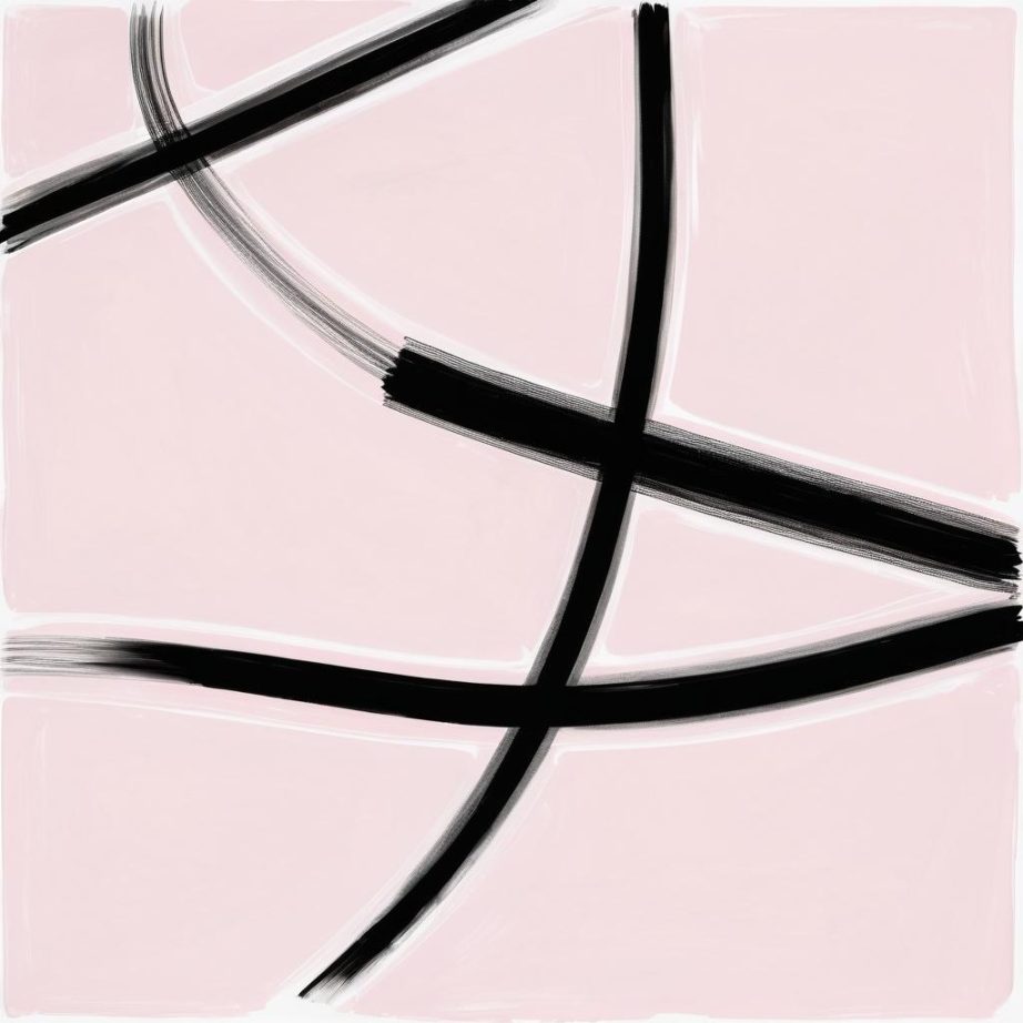 这幅作品以其简单的线条和柔和的色调,使观者立刻联想到童年的无忧无虑。黑色的线条在粉色背景上自由流动,仿佛是孩童在表达内心世界的简单涂鸦。这样的创作方式不仅表达了一种纯真无邪,也让我们反思成人世界中的复杂与简单之间的关系。