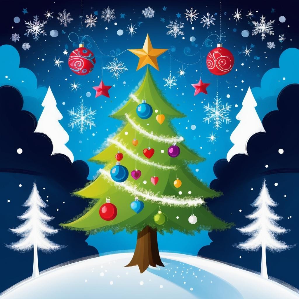 这幅童趣十足的圣诞树画作,展现了孩子们对节日的纯真想象。作品以简单的铅笔线条勾勒出一棵拟人化的圣诞树,心形的眼睛和星形的鼻子为树增添了情感元素,而几何图案的树干则给人一种现代而独特的感觉。这种创作不仅反映了孩子们的艺术天赋,也传达了他们对节日的期盼与喜悦。为了进一步提升这幅作品的艺术价值,可以在背景中加入色彩斑斓的雪花和星星,营造出浓厚的节日气氛。同时,使用彩色铅笔为圣诞树增添色彩,使其更具吸引力和生命力。此外,引入更多的几何形状和图案,不仅能丰富视觉效果,还可以增强作品的叙事性,使其成为一个富有故事性的艺术形象。通过这样的改进,这幅作品将不仅是一幅简单的儿童画,更是一个能够引发情感共鸣的艺术作品。