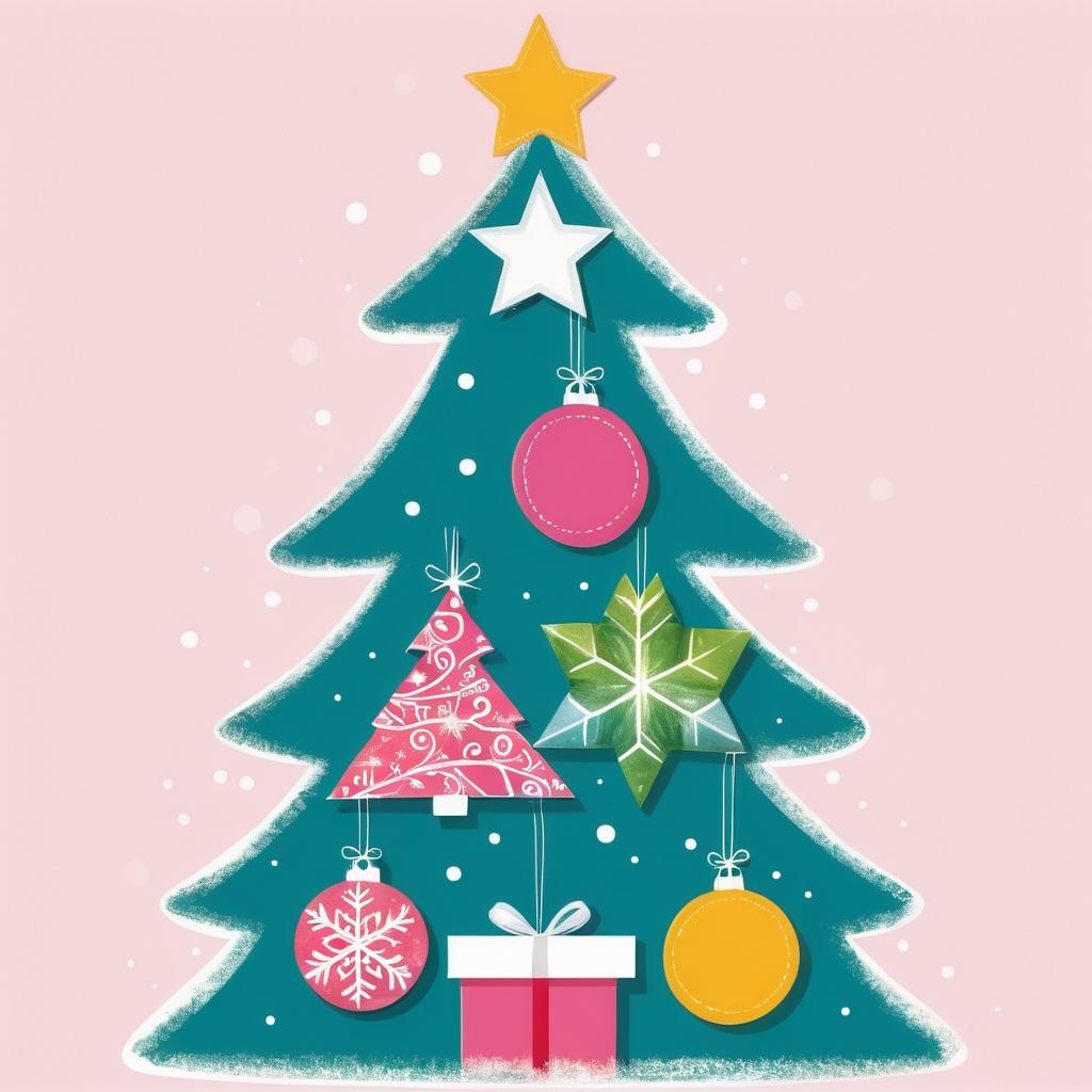 在这幅作品中,我们看到了一棵充满童趣的圣诞树。粉红色的背景为整个画面注入了一种温柔和愉悦的气氛,仿佛在轻声诉说着节日的喜悦。树由三个简单的三角形组成,每个三角形都配有不同的装饰图案,如圆形、方形和螺旋形,这些形状简洁却不失趣味,仿佛是孩子们对圣诞节的美好幻想。顶端的圆形星星透出一丝梦幻的光芒,象征着节日的希望与祝福。树干的设计虽然简单,却在平衡整体构图中起到关键作用。这样一幅作品不仅仅是简单的儿童画,同时也是对圣诞节精神的一种纯粹表达。通过细节的丰富和色彩的运用,创作者可以进一步增强作品的视觉冲击力。未来的创作中,如果能加入一些渐变色彩或细致的纹理,或许会让这幅画更具层次感和吸引力。