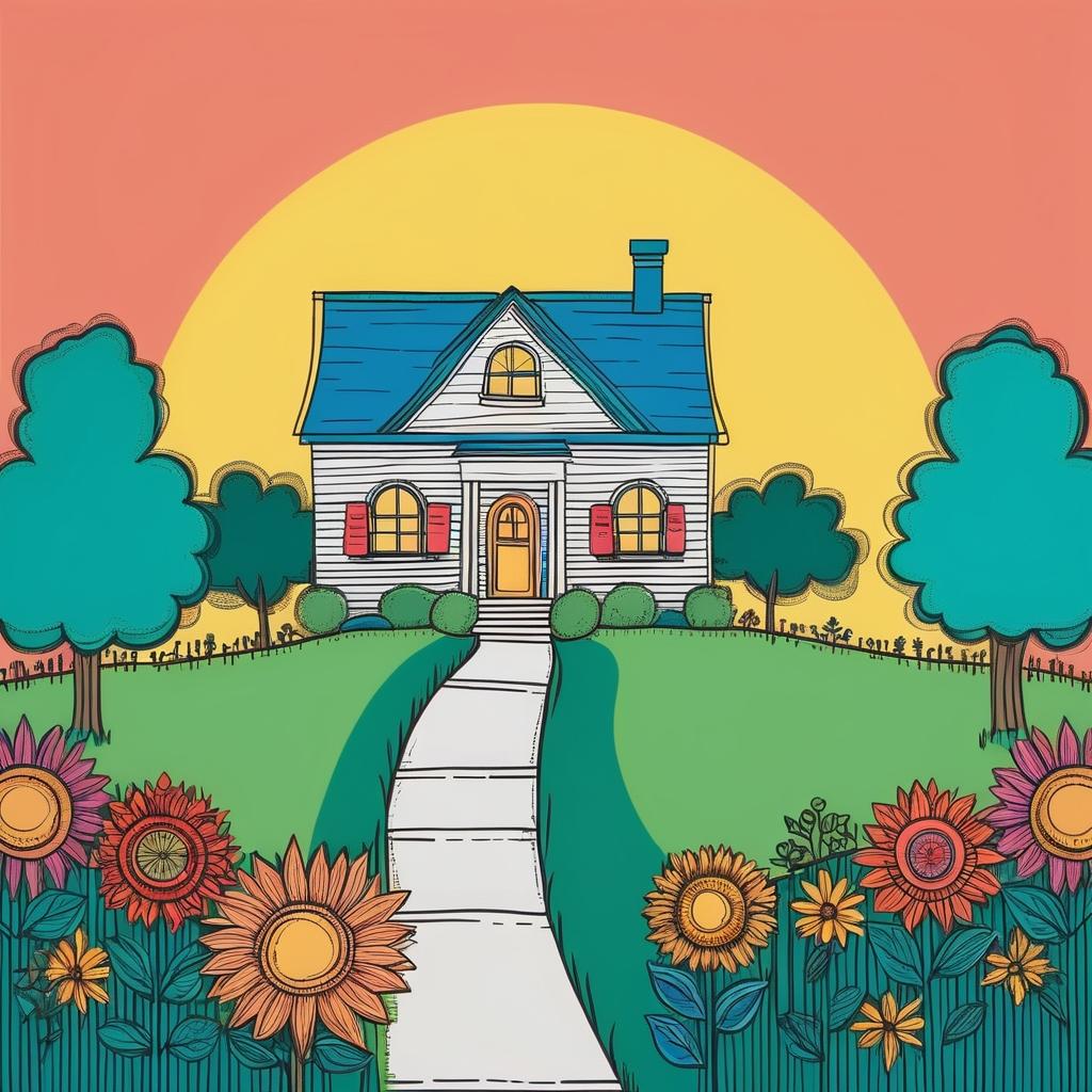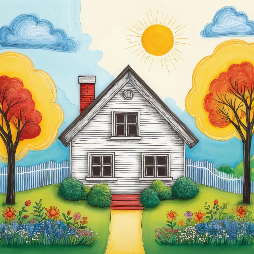 这幅作品以简单的线条勾勒出一个房子和一个太阳,传达出一种纯真而温暖的情感。在艺术创作中,这种简约的表达方式常常能够直接触动观众的内心,引发共鸣。房子在视觉上象征着家的安全和安定,而太阳则代表了希望和活力。通过这种简单的构图,创作者可能意在唤起人们对家的向往和对美好生活的期待。