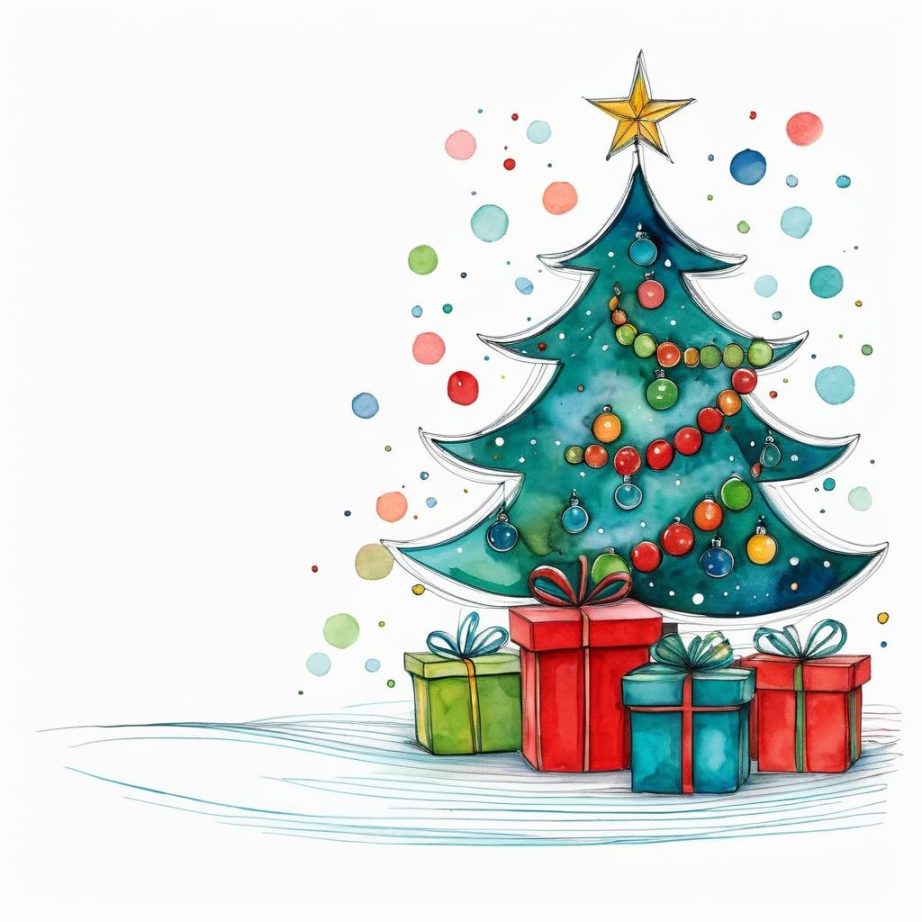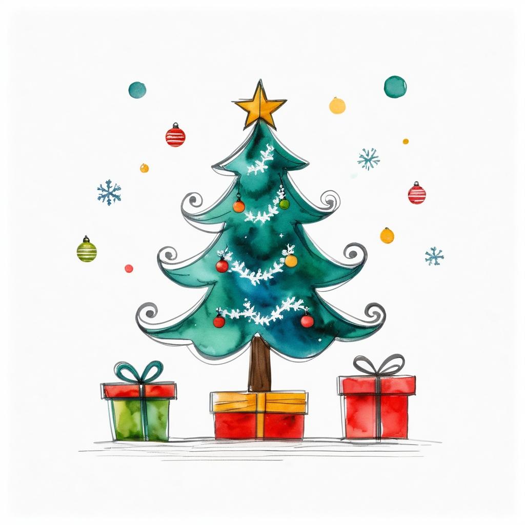 从艺术的角度来看,这幅画可以被视为Naïve Art的一种表现。这种风格常常借助简单的构图和直接的表达方式,捕捉生活中的美丽与童趣。创作者可以通过加入颜色来提升作品的感染力。使用水彩或彩色铅笔为树和礼物盒增添色彩,并在背景中加入雪花或星星等元素,可以更好地营造节日氛围。