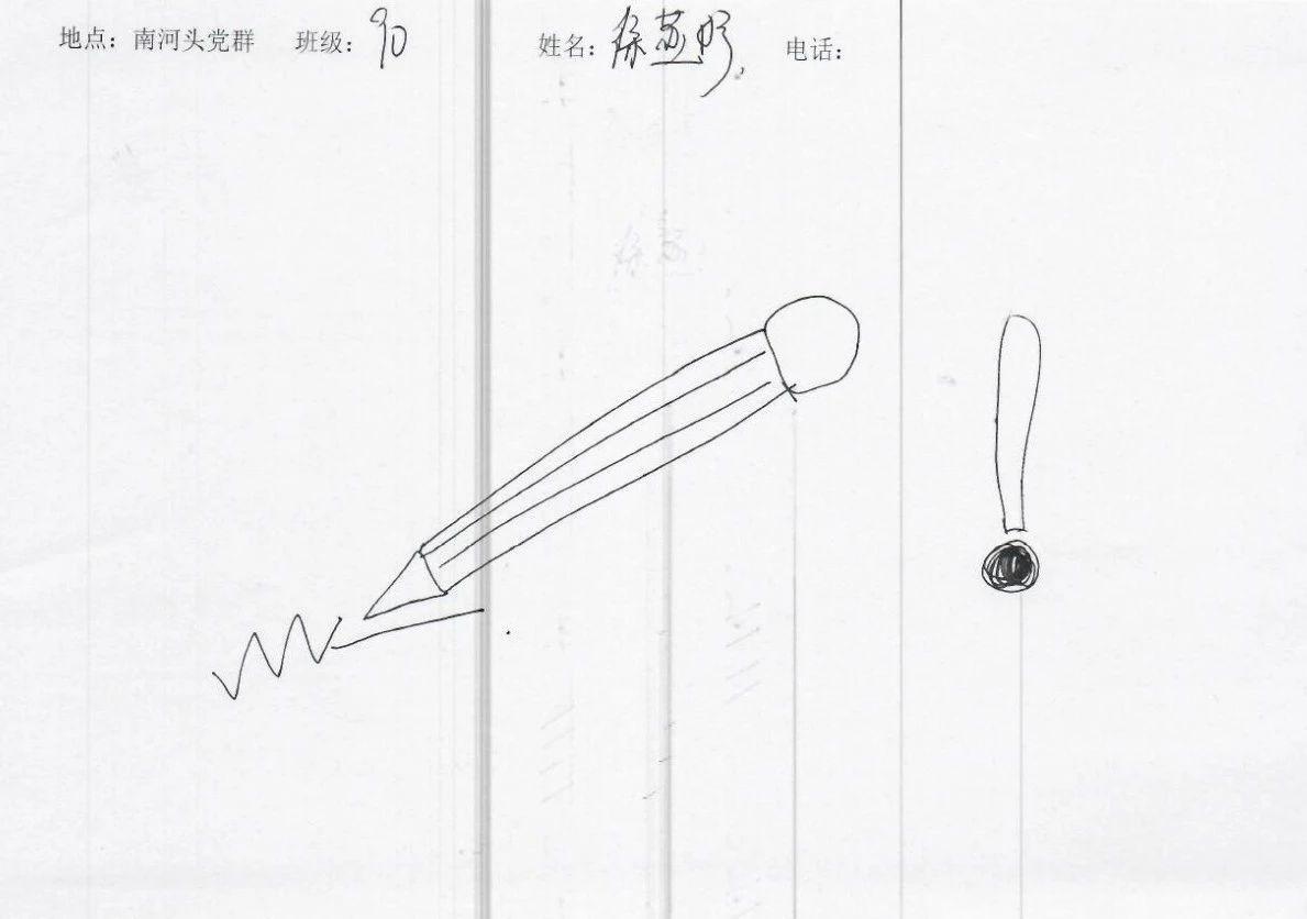 这幅作品以其简约的线条传达了一种直接的视觉语言,反映出儿童艺术的天真和纯粹。可以考虑在背景中添加一些色彩或形状,以增强画面的层次感和视觉冲击力。此外,可以通过增加情境,如在铅笔和感叹号之间加入一些互动的元素,来丰富故事性。这样的改进不仅保留了原始的简单美感,还能赋予作品更多的深度和情感共鸣,吸引观众的注意力。