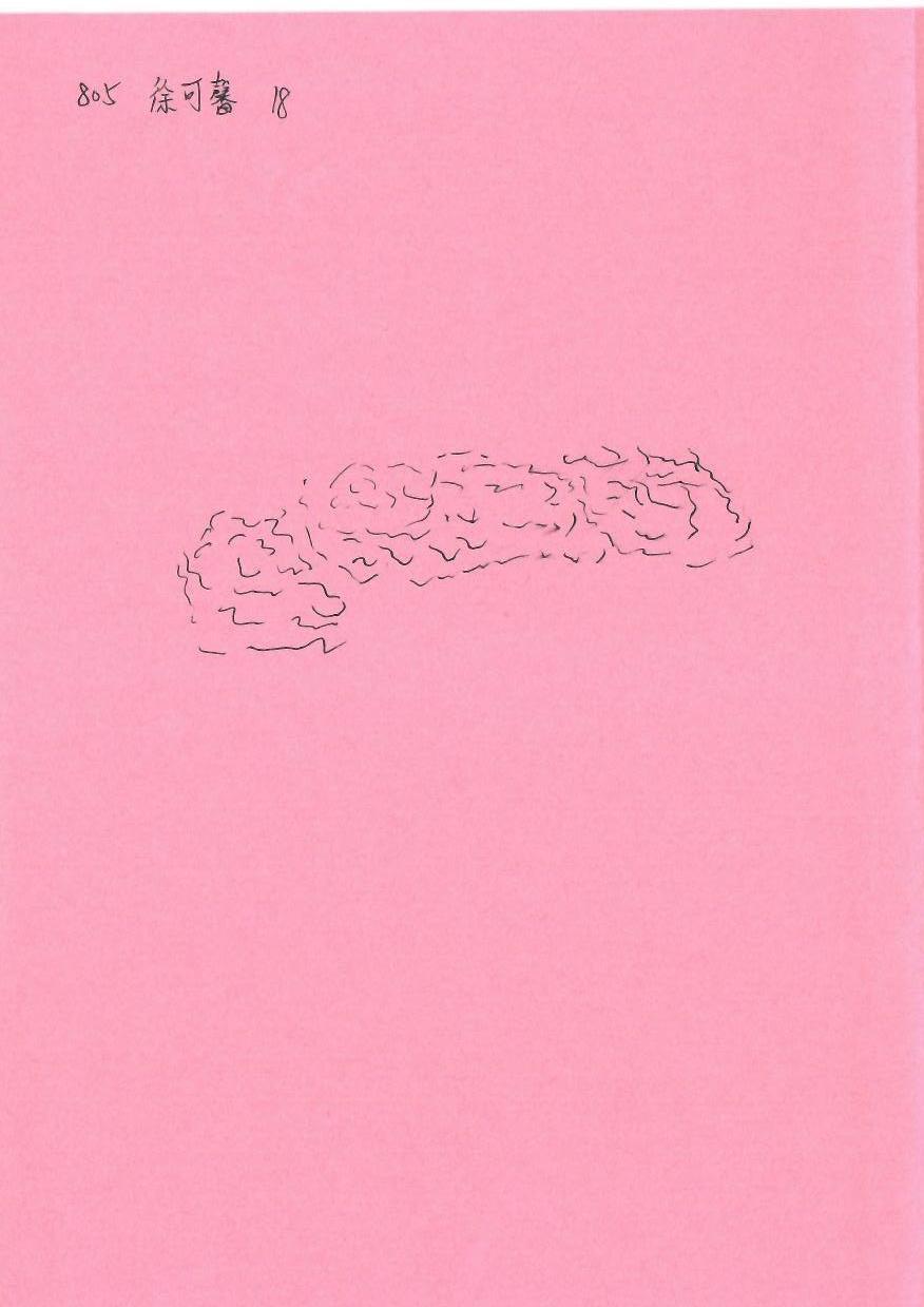 这幅作品采用粉红色作为背景,搭配简单的黑色线条,呈现一种抽象的形态。整体构图简约,注重空白的运用,给人一种空灵和静谧的感觉。线条的起伏似乎在描绘某种自然元素,如云朵或水流,传达出一种流动的意象。创作者可能试图通过这种简约的表现形式探讨空间和存在的关系。