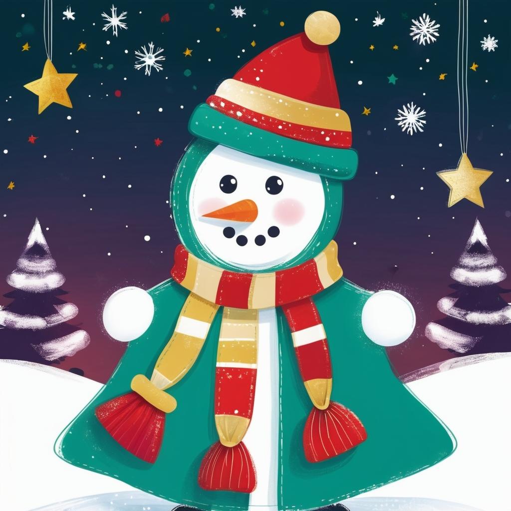 可以将人物的冬季服装设计为卡片的中心元素,添加细节如围巾、手套和雪靴。为树添加彩灯和星星装饰,背景融入柔和的雪景和温暖的灯光。通过使用红、绿、金色调来强化节日氛围,增强整体视觉吸引力。