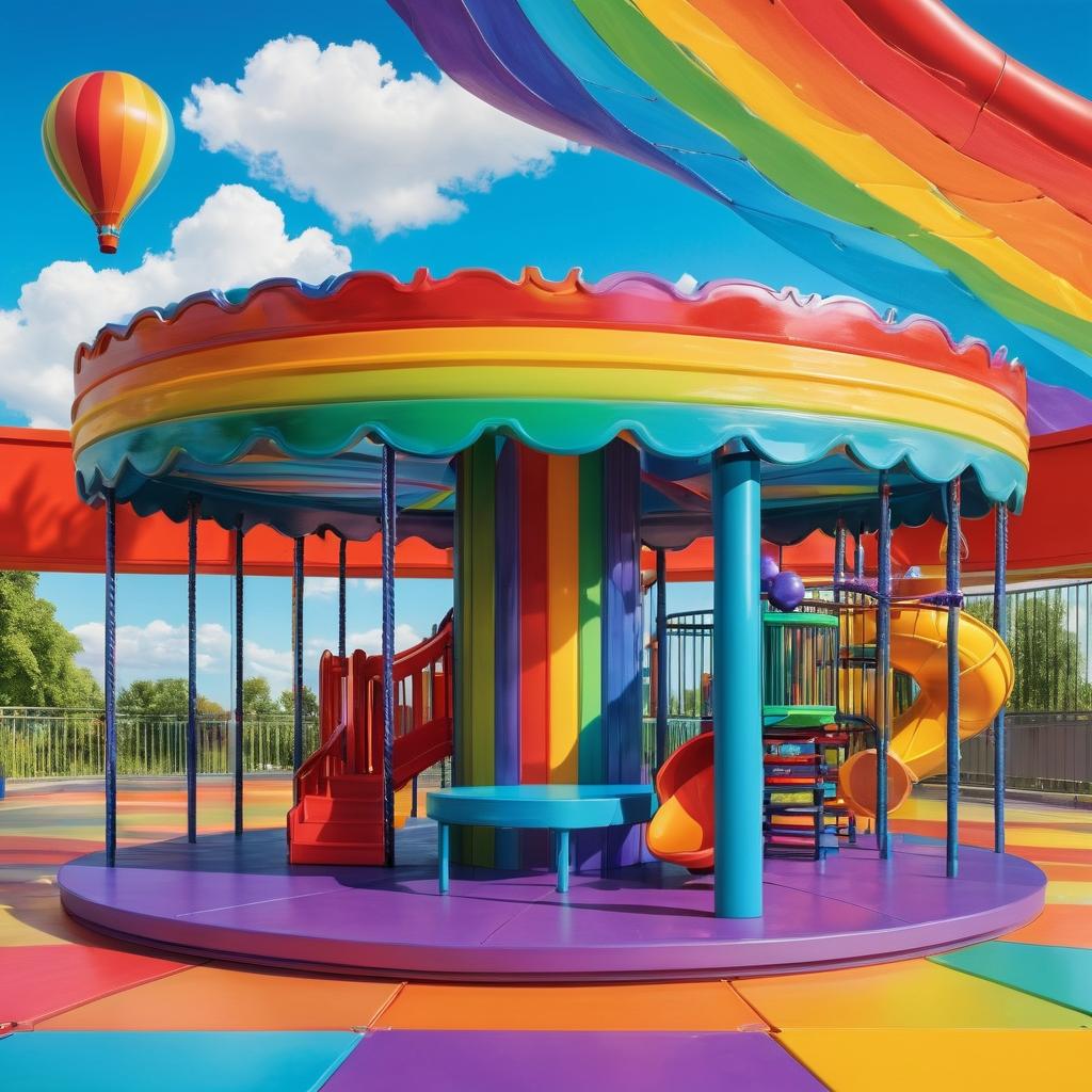 这幅作品以其鲜艳的色彩和简单的形状吸引眼球,展现了一种无忧无虑的童趣。为了提升作品的深度,可以考虑结合背景元素,增加更多与儿童相关的场景,如游乐园或学校操场,以增强情感共鸣。此外,可以运用不同的光影效果,营造一种梦幻或神秘的氛围,使作品更加生动和吸引人。通过引入一些互动元素,如正在玩耍的儿童或动物角色,可以增加作品的动态感和故事性。