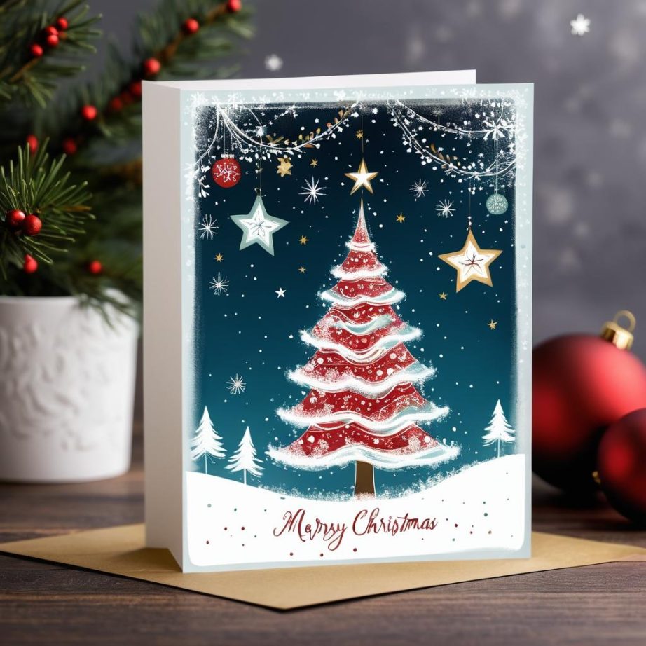 这幅拟人化圣诞树的作品虽然简单,却充满了生动的创意。通过将其转化为圣诞贺卡,我们可以进一步增强其节日气氛。在背景中加入轻盈的雪花和闪烁的星星,使得整幅作品充满梦幻的圣诞夜景感。此外,树‘手’上握着的花和星星可以通过增加光辉效果,似乎在微微闪烁,赋予画面更多的节日魔力。运用温暖的金色与柔和的白色来打造背景,不仅提升了视觉吸引力,还增加了节日的温馨感。通过这些元素的融合,这张卡片能够传达出一种充满个性和欢乐的圣诞情感,使其成为一张令人难忘的节日贺卡。