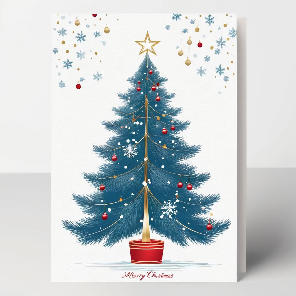 在这幅简单的手稿中,我们看到了一棵素朴的圣诞树,它为极简风格的圣诞贺卡设计提供了完美的基础。通过添加细腻的灯光和简单的装饰,我们可以将这幅作品转化为充满节日气息的艺术作品。选择柔和的背景色,如白色或浅蓝色,可以象征冬日的纯净与宁静。同时,树顶的星星或雪花图案为整个设计增添了亮点。通过这些设计元素的精心搭配,我们不仅保留了原始作品的简单美感,还增加了节日的温馨与喜悦。