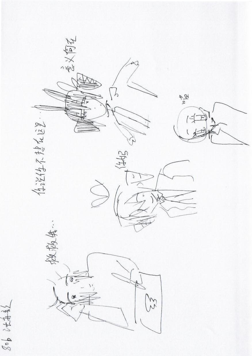 这幅手稿中包含四个人物的简笔画,人物姿态和表情各异,风格简洁。画中没有明显的节日元素,如圣诞树或雪景。因此,需要将人物的姿态和服装细节与圣诞元素结合,例如添加圣诞帽、围巾或背景中的圣诞树和雪花。可以利用人物的姿态,例如手指的动作,来传达温馨的节日问候。