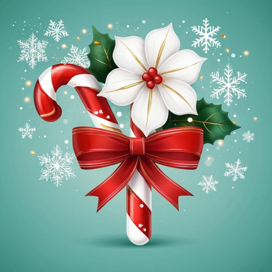 通过将拐杖糖的条纹部分涂成红白相间的经典圣诞色彩,并为花朵添加金色和绿色元素,形成圣诞主题的视觉焦点。背景可以加入轻柔的雪花图案和模糊的圣诞灯饰,营造出温馨的节日氛围。可以考虑在花朵的中心加上微笑的表情,以增强欢乐感。