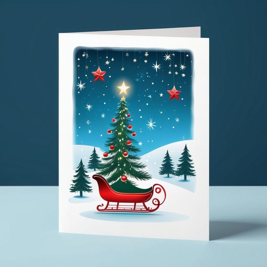 将雪橇和驯鹿作为核心元素,添加闪烁的星星和雪花。可以在背景中加入装饰灯光的圣诞树和温暖的灯光效果。使用柔和的蓝色和白色作为背景色,点缀红色和绿色的圣诞装饰,增强节日气氛。