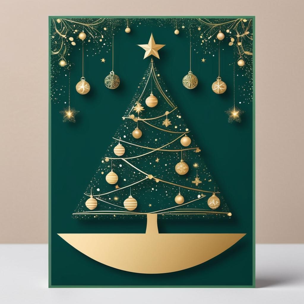 这幅手绘草图通过其独特的几何设计,为现代极简风格的圣诞贺卡提供了丰富的创作潜力。通过将图案转化为一棵具有现代感的圣诞树,我们能够创造出一种既简约又充满节日氛围的视觉效果。灯饰和金色装饰的添加不仅增强了节日气息,也使画面更具动感和活力。背景中的温暖灯光和细腻的雪花图案进一步提升了节日的温馨感。通过色彩的巧妙运用,我们能够捕捉到圣诞节的喜悦与宁静,打造出一张富有情感共鸣的贺卡。
