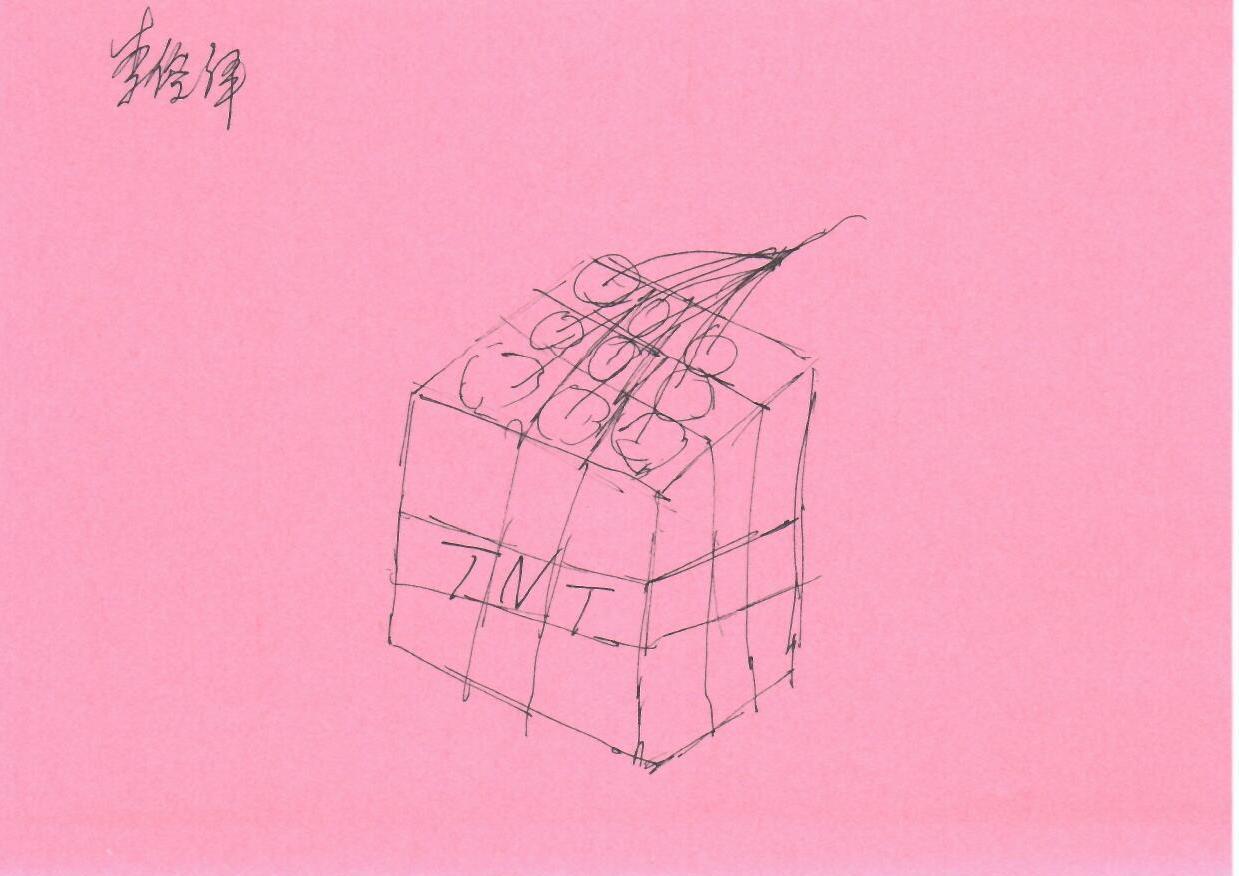 这幅图展示了一个手绘的立方体,上面标有 ‘TNT’ 字样。虽然整体色调是粉红色,但缺乏直接的圣诞元素。可以考虑将立方体转化为礼物盒,添加圣诞装饰以增强节日气氛。