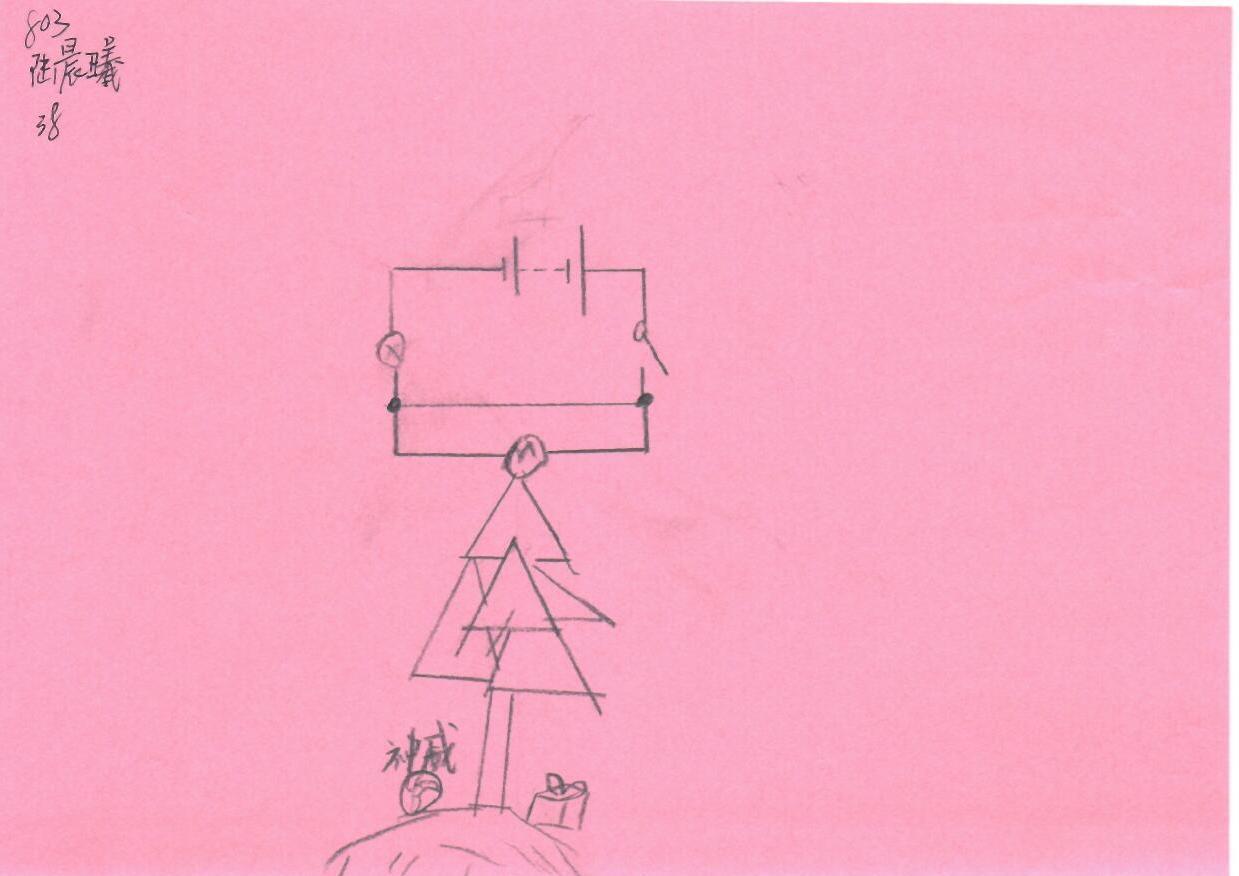 这幅手绘作品中包含一个电路图与圣诞树的组合,虽然没有人物,但圣诞树和礼物盒子是明显的节日元素。背景色为柔和的粉色,为整体画面增添了温馨的感觉。可以考虑强化圣诞树的装饰细节,例如添加灯光效果和更多礼物元素,以增强节日氛围。