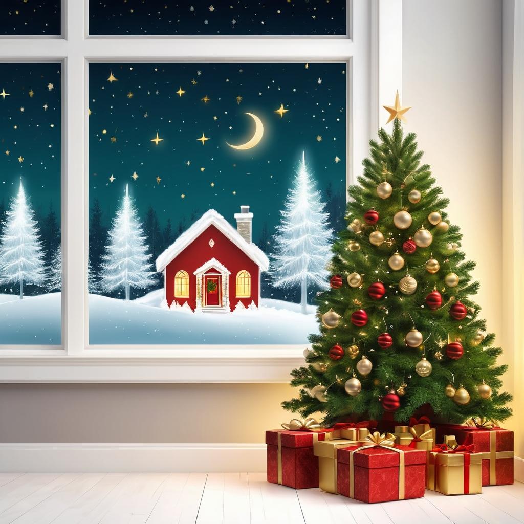 可以将这幅草图转化为一张现代极简风格的圣诞卡。通过增加细节来丰富圣诞树的装饰,例如添加更多的灯光效果和闪耀的金色元素。背景可以融入更多的雪花和星光点缀,提升节日气氛。房屋的窗户可以设计成透出温暖的灯光,营造出居家的温馨感。