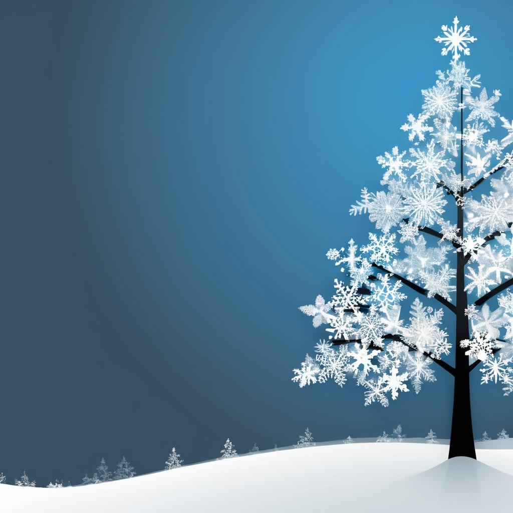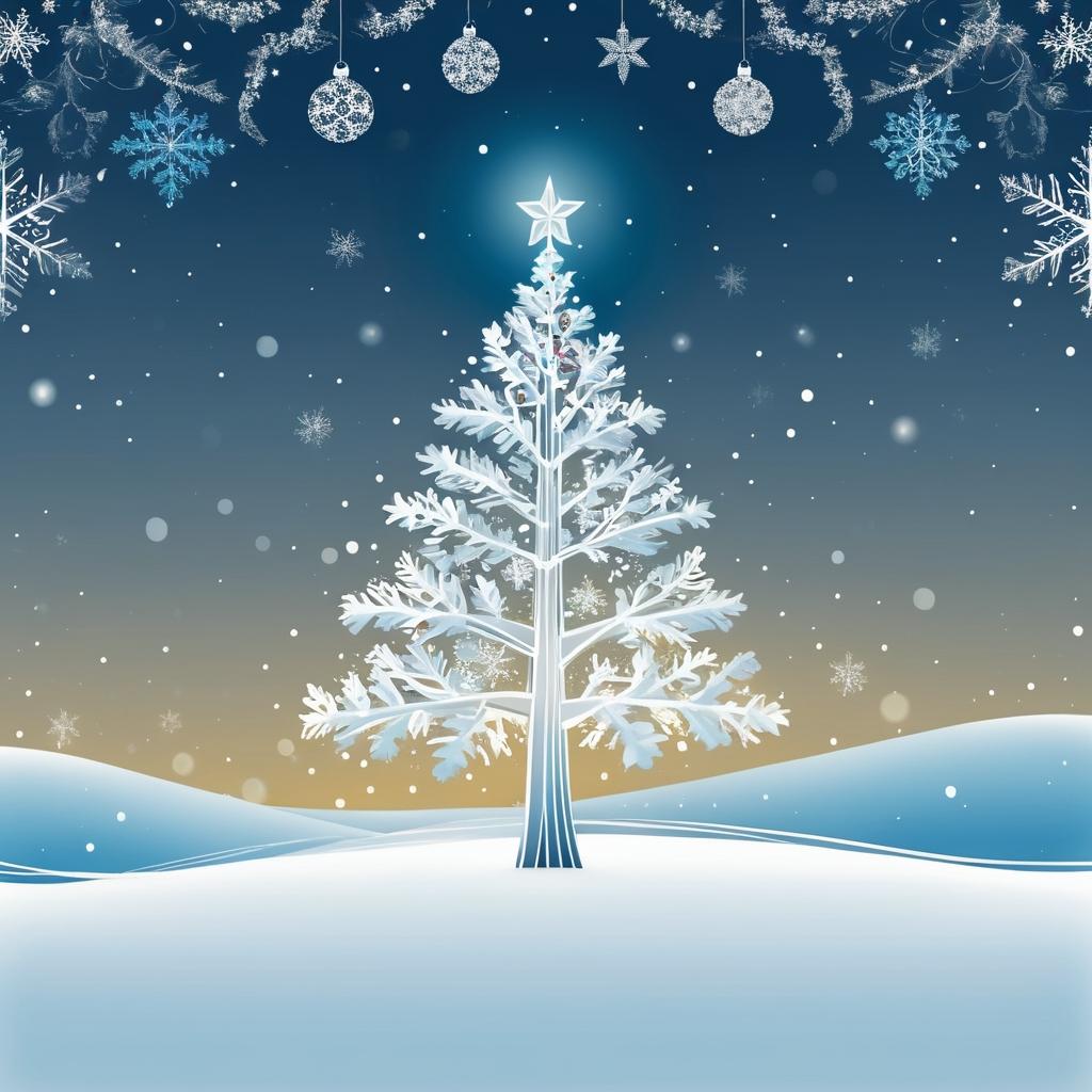 可以在树形结构上增添微型的灯光效果,使用温暖的黄色和柔和的白色,模拟圣诞灯饰的感觉。背景可以巧妙地运用淡蓝色和浅灰色,形成冬季天空的冷冽感。加入细小的雪花点缀,仿佛在轻轻飘落,增强画面的动感与生机。