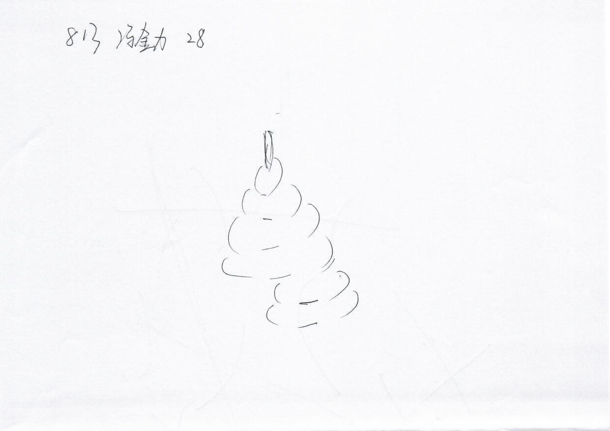 这幅作品是一幅简单的手绘草图,图中包含了一个螺旋状的形状,可能代表圣诞树。没有明显的人物元素,背景纯白,缺乏直接的节日元素,如灯光装饰或礼物。由于画面简洁,建议可通过添加色彩和装饰来丰富节日氛围。