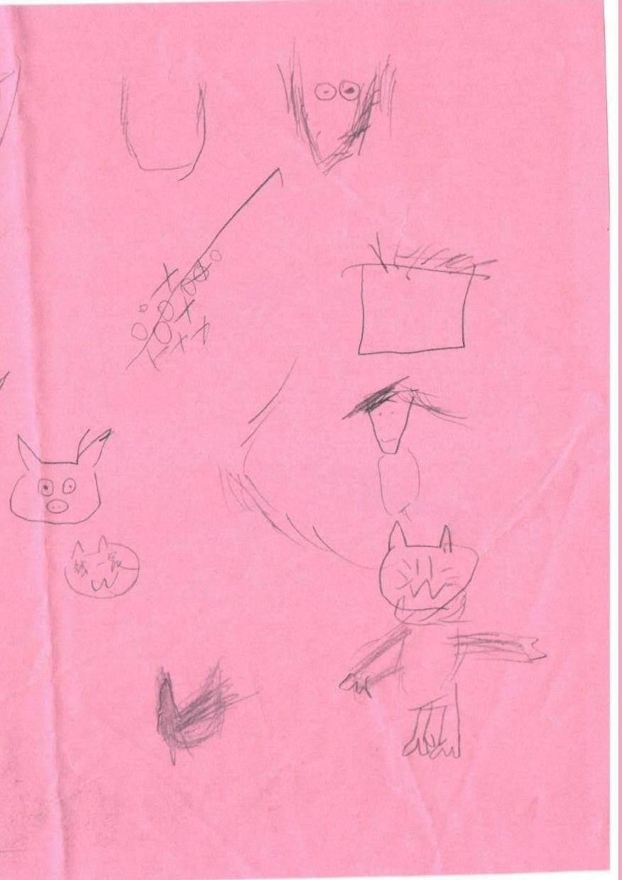 这是一幅手绘草图,包含多个简单的人物和动物形象。主要人物为一只张开双臂的卡通风格小动物,面带微笑。整体布局松散,背景为空白,缺乏明显的圣诞节元素,如圣诞树、雪景或灯光装饰。线条简单,具有童趣和随意的艺术风格。