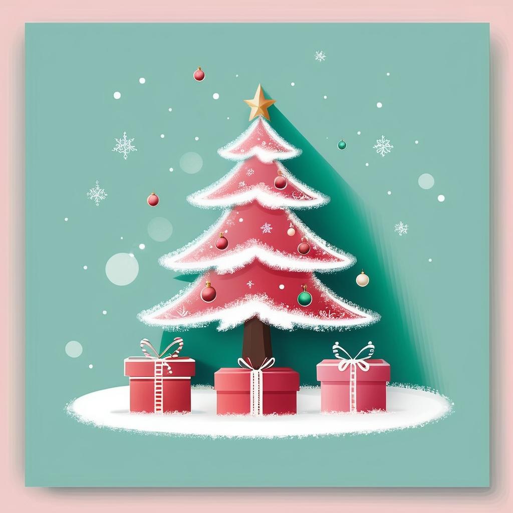 将圣诞树和礼物作为设计的核心,添加精致的灯饰和装饰来强调节日气氛。可以在背景中加入柔和的雪景和暖色灯光,营造温馨的节日氛围。利用红色和绿色的调色板来补充粉色背景,增加节日的色彩感。