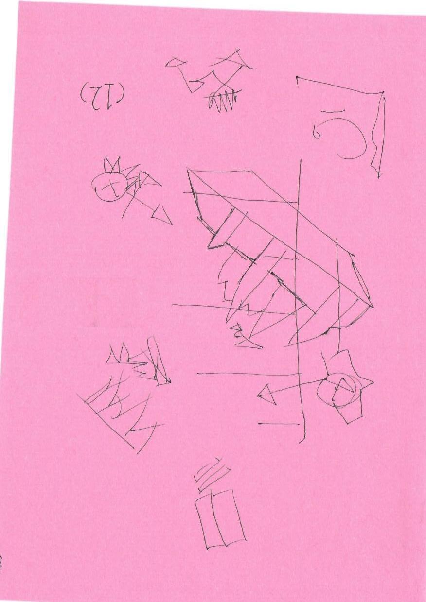 这幅图片呈现了一组抽象的线条和形状,可能象征着不同的物体或概念。虽然没有明确的人物或节日元素,但可以通过形状的组合创造圣诞氛围。可以将中间的主要形状想象为圣诞树,周围的形状则可以转化为装饰物、礼物盒等。色彩方面,粉色背景可以被转换为更传统的红色或绿色,以增强圣诞气息。