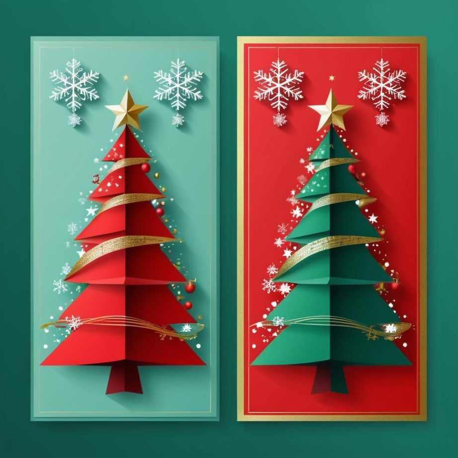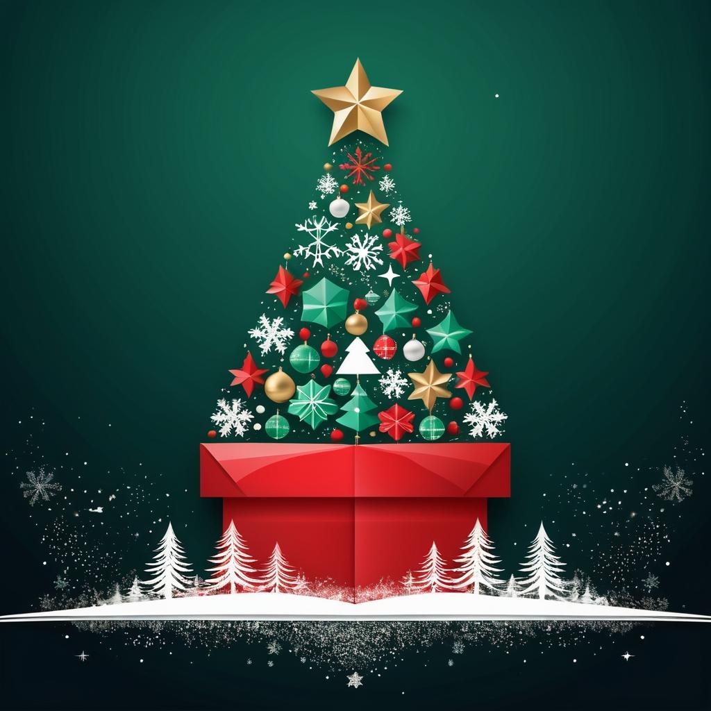 将中心的几何形状转化为圣诞树,添加星星和灯饰。周围的形状可被设计为雪花、圣诞铃铛和礼物。通过使用红、绿、金等传统节日色彩,增强整体的节日氛围。背景可加入柔和的雪花飘落效果,增加画面动感和节日气息。