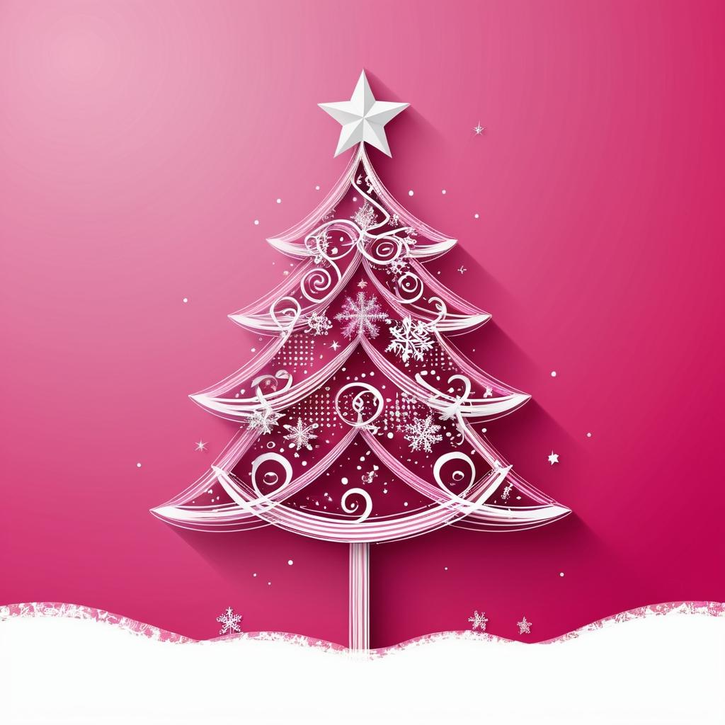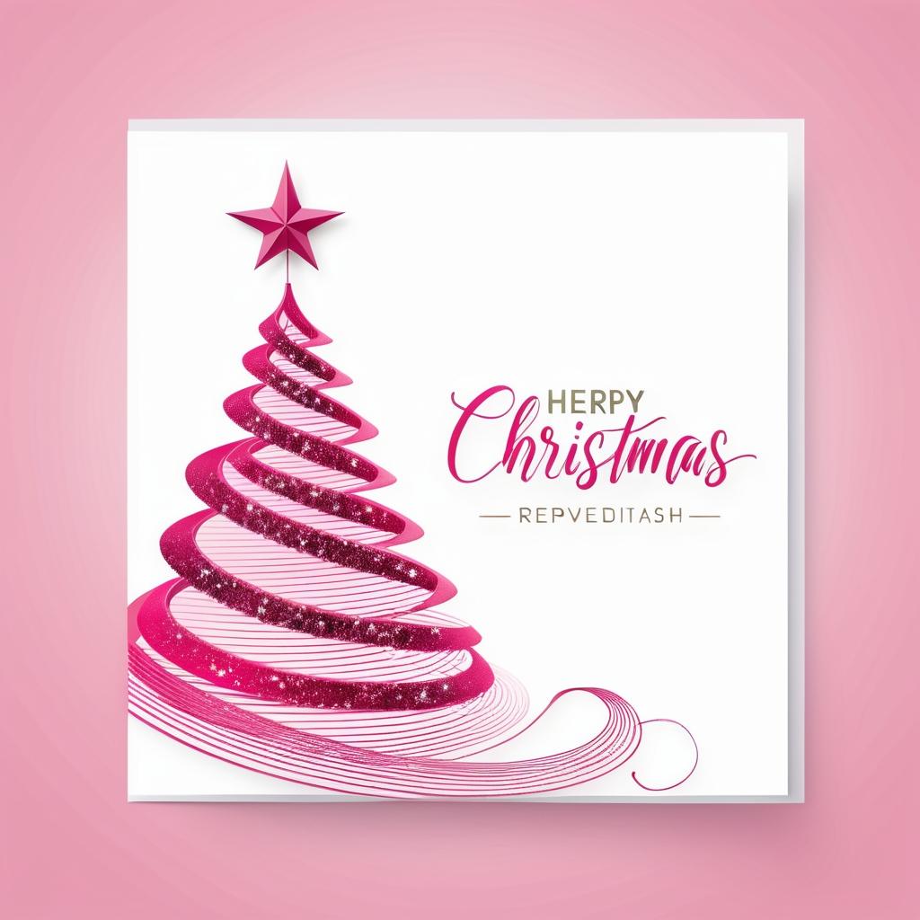 将图片中的螺旋线条转化为飘扬的丝带,围绕一棵装饰有星星和灯光的圣诞树。背景可以保持粉色,作为与传统圣诞色彩的对比,增加现代感。添加一些雪花和柔和的灯光效果,营造温馨氛围。