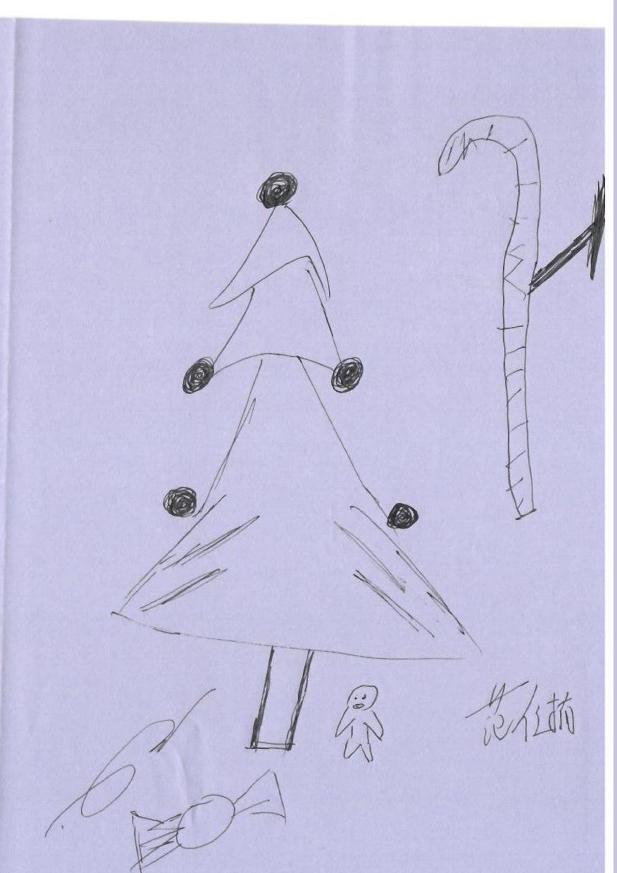 这幅手绘作品简单勾勒了一棵圣诞树,树上有装饰球,旁边有一个拐杖形状的物体,底部似乎有一个小人形。整体采用黑白色调,线条简洁。缺乏明显的节日元素如灯光、雪景等,但有创意的潜力。通过添加色彩和更多细节,可以增强其艺术表现力和节日氛围。