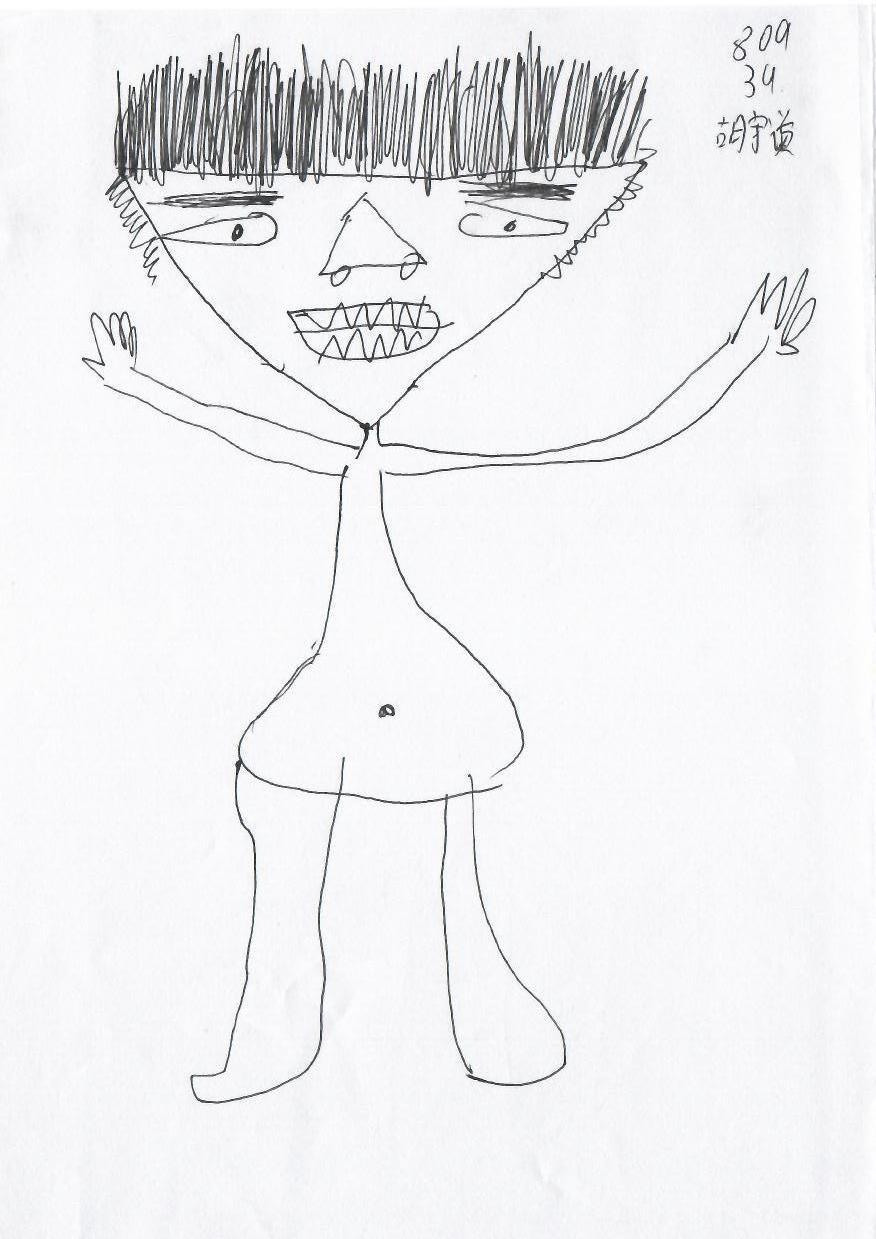 这幅手绘作品有着独特的风格,其主体是一个简单却极具个性的角色。角色姿态开放,似乎在欢迎或庆祝。虽然没有直接的节日元素,但这种简约风格可以通过增添圣诞装饰来转化为节日氛围。整体线条粗犷,具有孩童般的天真感。
