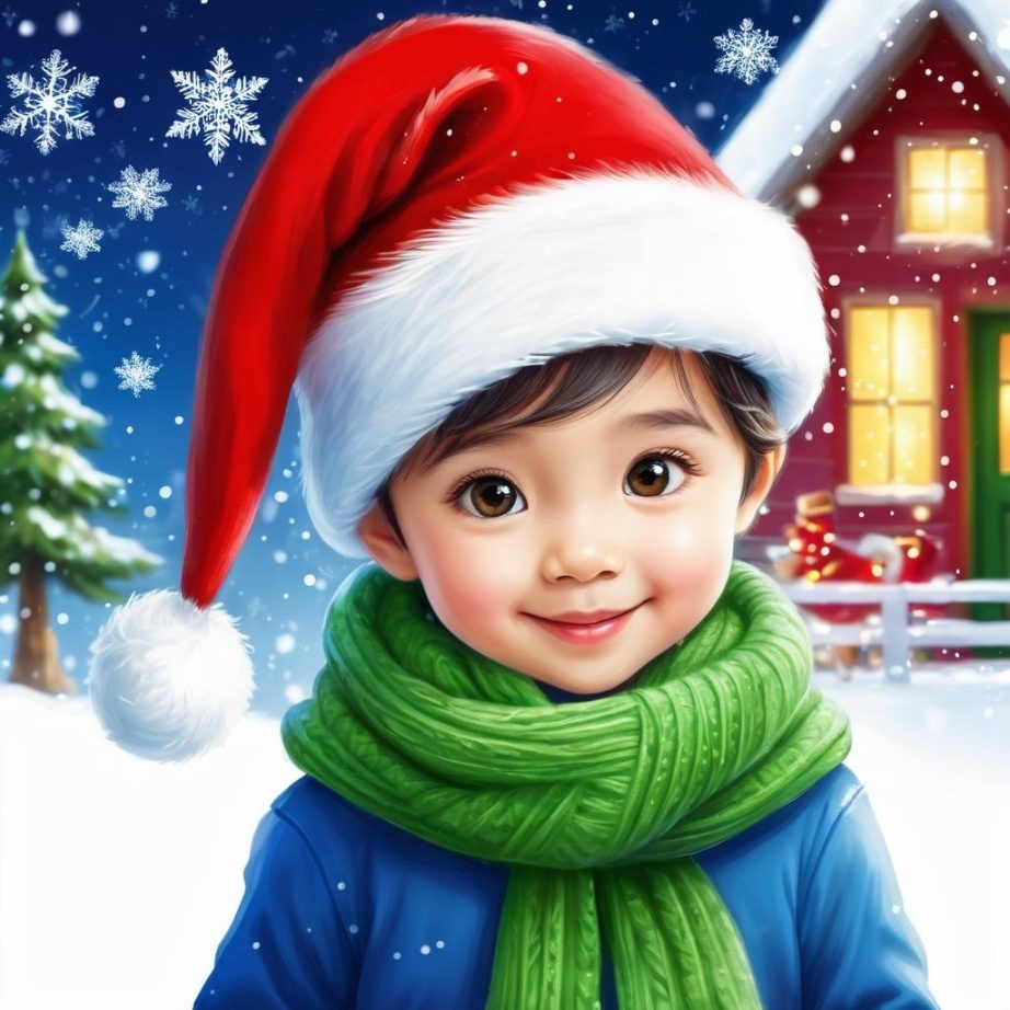 将角色的开放姿态作为圣诞贺卡的核心,添加圣诞帽和围巾以传达节日气氛。背景可设计为雪花飘舞的冬日场景,增加灯光和小礼物点缀。利用红绿搭配的色彩方案,使角色更加融入节日氛围中。角色面部的微笑可被强调为节日的欢乐情感。