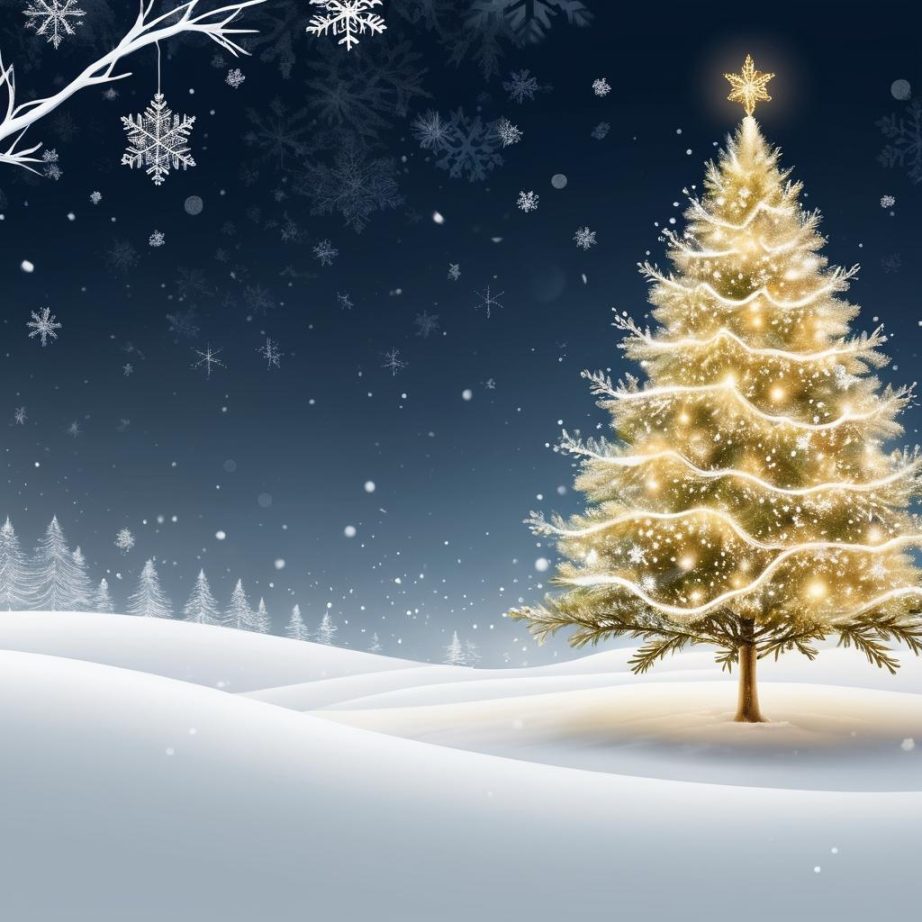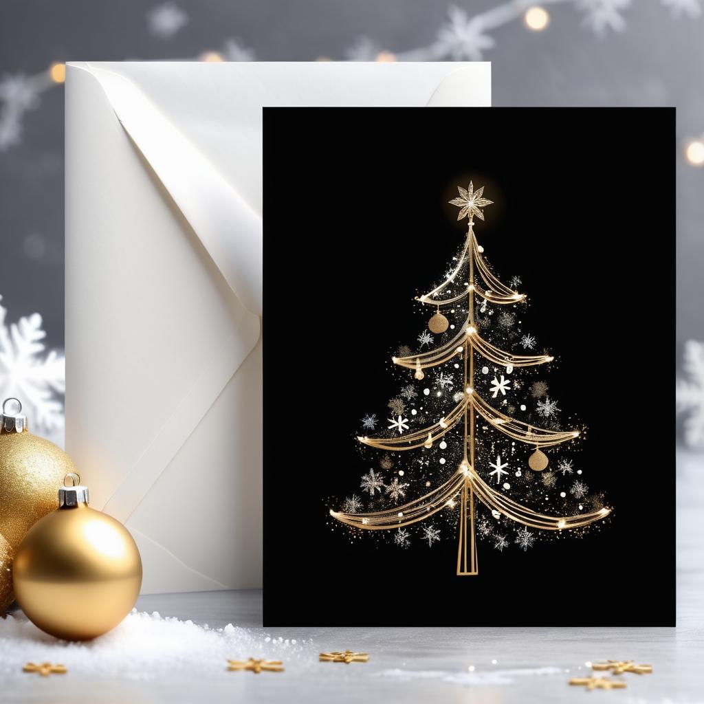 利用现有的圣诞树轮廓,添加细腻的灯光装饰和雪花图案。可以在背景中加入模糊的雪景效果,增强节日的视觉冲击力。使用柔和的灯光效果和金色、白色的点缀,营造温馨的节日氛围。