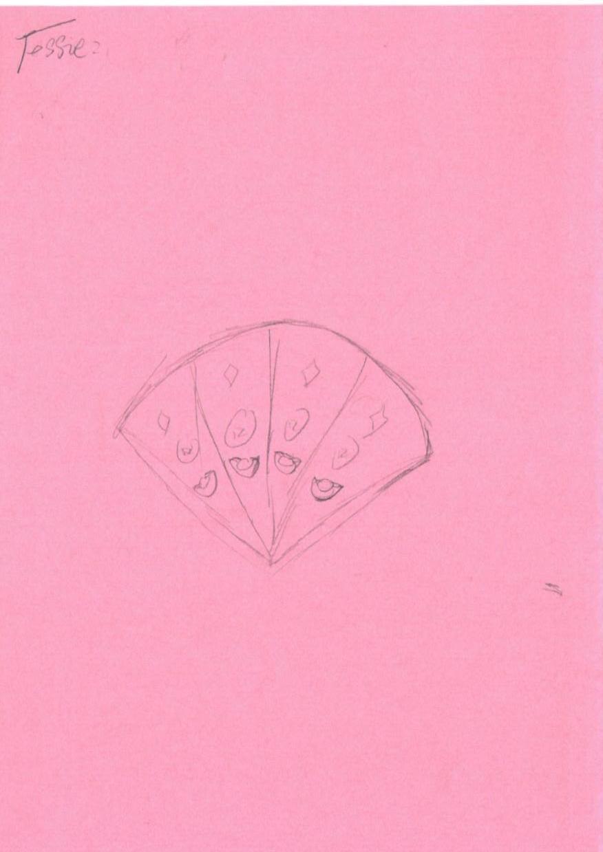 这幅作品是一个简单的手绘草图,展示了一个扇形的设计,可能是一个装饰扇或类似物品。图中没有人物元素,缺乏直接的节日元素如雪景或圣诞装饰。背景为粉色,主体的线条简单,未使用明显的光影效果或色彩。可以考虑将扇形图案转化为圣诞主题的装饰元素,例如雪花或圣诞树装饰。