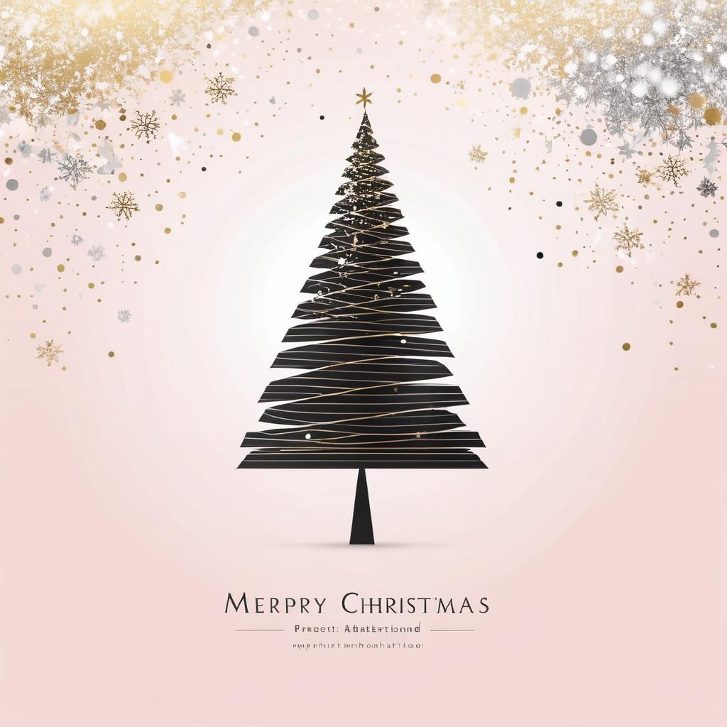 在这次设计中,我们从一幅简单的抽象作品中汲取灵感,将其转化为充满节日氛围的圣诞贺卡。图片中的粉色背景被视为温暖与喜庆的象征,而黑色的弯曲线条则成为现代极简风格中的核心元素。通过在其上添加金色和银色的圆点,我们将这条线转化为圣诞树的轮廓,营造出一种优雅而现代的节日氛围。此外,背景中加入柔和的雪花图案,增强了画面的层次感和冬日意境。这种设计不仅保持了极简的美学,同时也在细节中传递出浓厚的节日气息,是现代节日贺卡设计中的一种创新表现。