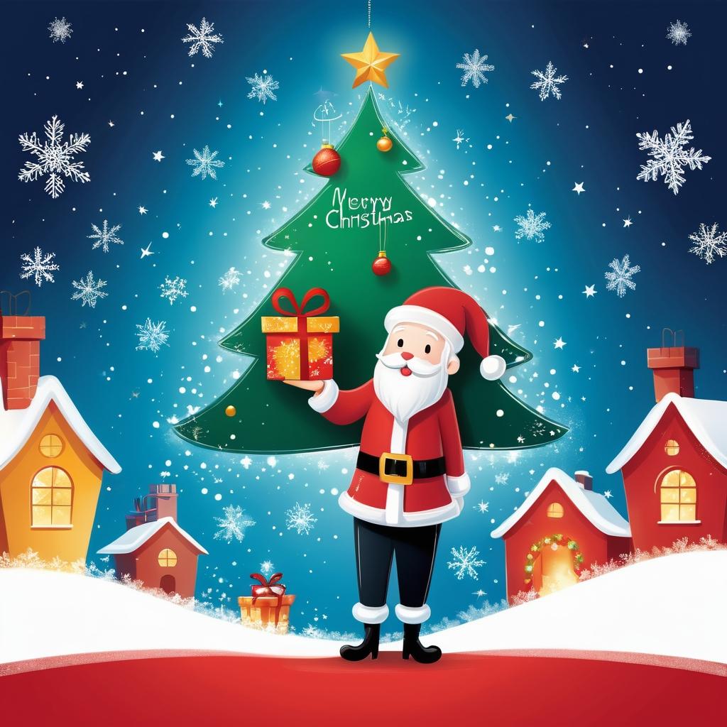 将人物周围的环状图案转化为圣诞花环,并在人物手中添加一个小礼物盒,结合温暖的灯光效果。背景可以加入细腻的雪花图案和柔和的金色星光,增强节日氛围。人物的姿态可以被强调为迎接圣诞的姿势。