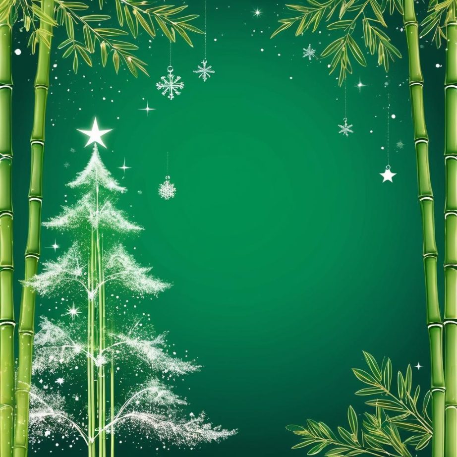 可以将竹子元素与圣诞节传统元素相结合,例如在竹子周围添加雪花飘落的效果,或者在背景上绘制一个简约的圣诞树轮廓。使用柔和的灯光效果,营造出节日的温暖感。竹叶可以被设计成星星点缀,体现出节日的梦幻氛围。