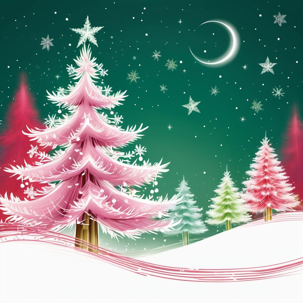 在这幅作品中,将竹子这一自然元素转化为富有圣诞氛围的贺卡设计是一种独特而创新的方法。尽管竹子本身并不具备传统的节日象征,但通过添加飘落的雪花和简约的圣诞树轮廓,可以轻松实现节日的氛围。竹叶的形状被巧妙地转化为星星,象征着节日的光辉与希望。粉色的背景与温暖的灯光效果相结合,为整体画面增添了一种柔和而温馨的节日感。这种设计不仅保留了原作品的简约美感,还通过细致的节日元素融入,使其充满了喜悦与宁静的节日情感。